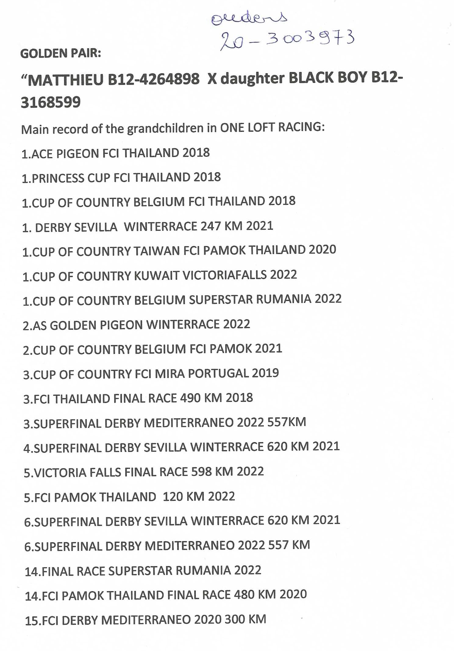 “Mathieu 898” x “Daughter Black Boy 599” are