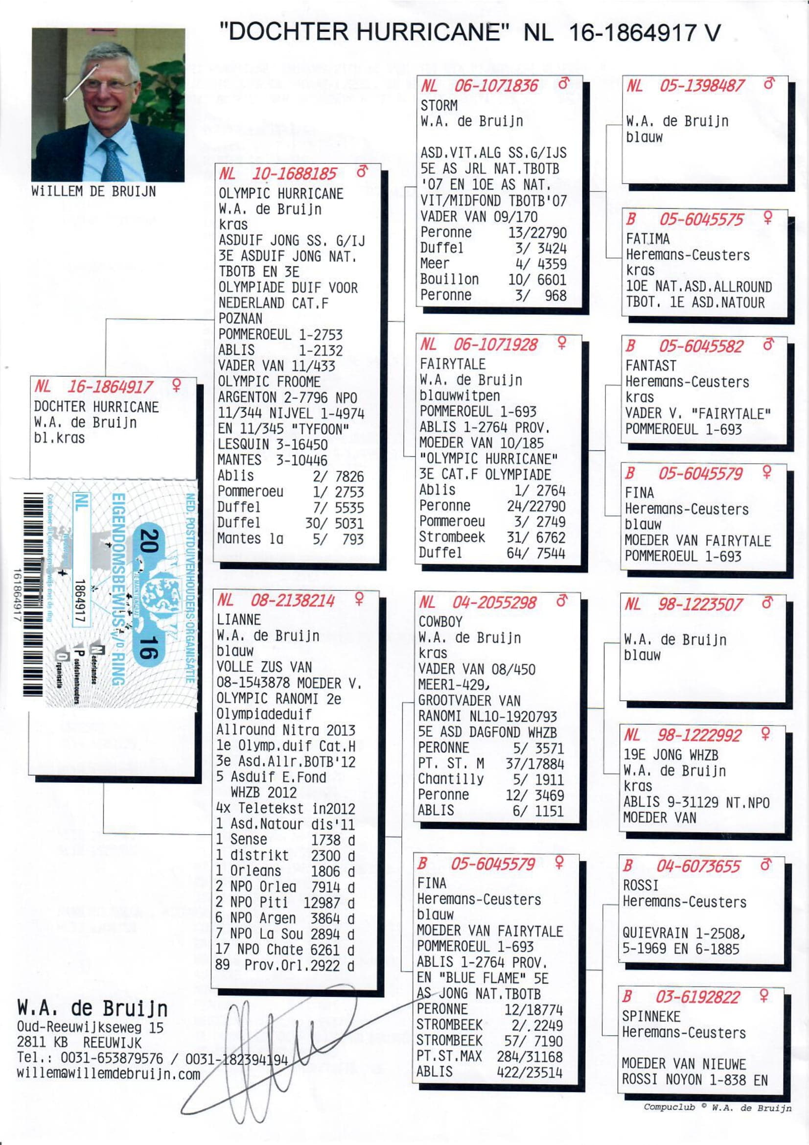 1st Olympiad bird Allround Brussels 2017 (at Hans Boenders)