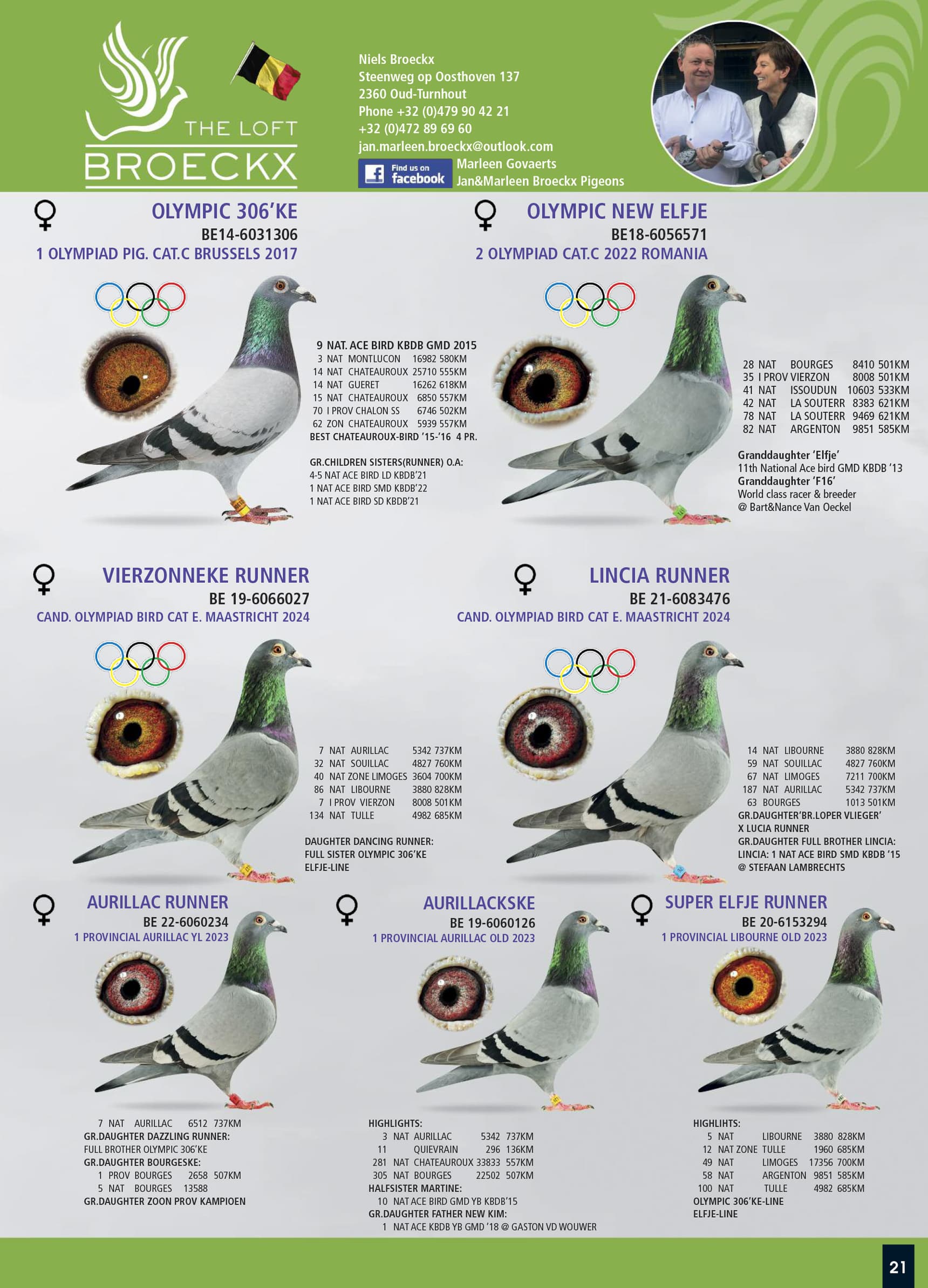 Born out “Brother Elfje” (full brother 11th Nat. ace KBDB G.M.D. ’13) x “Granddaughter Olympic 306’ke”