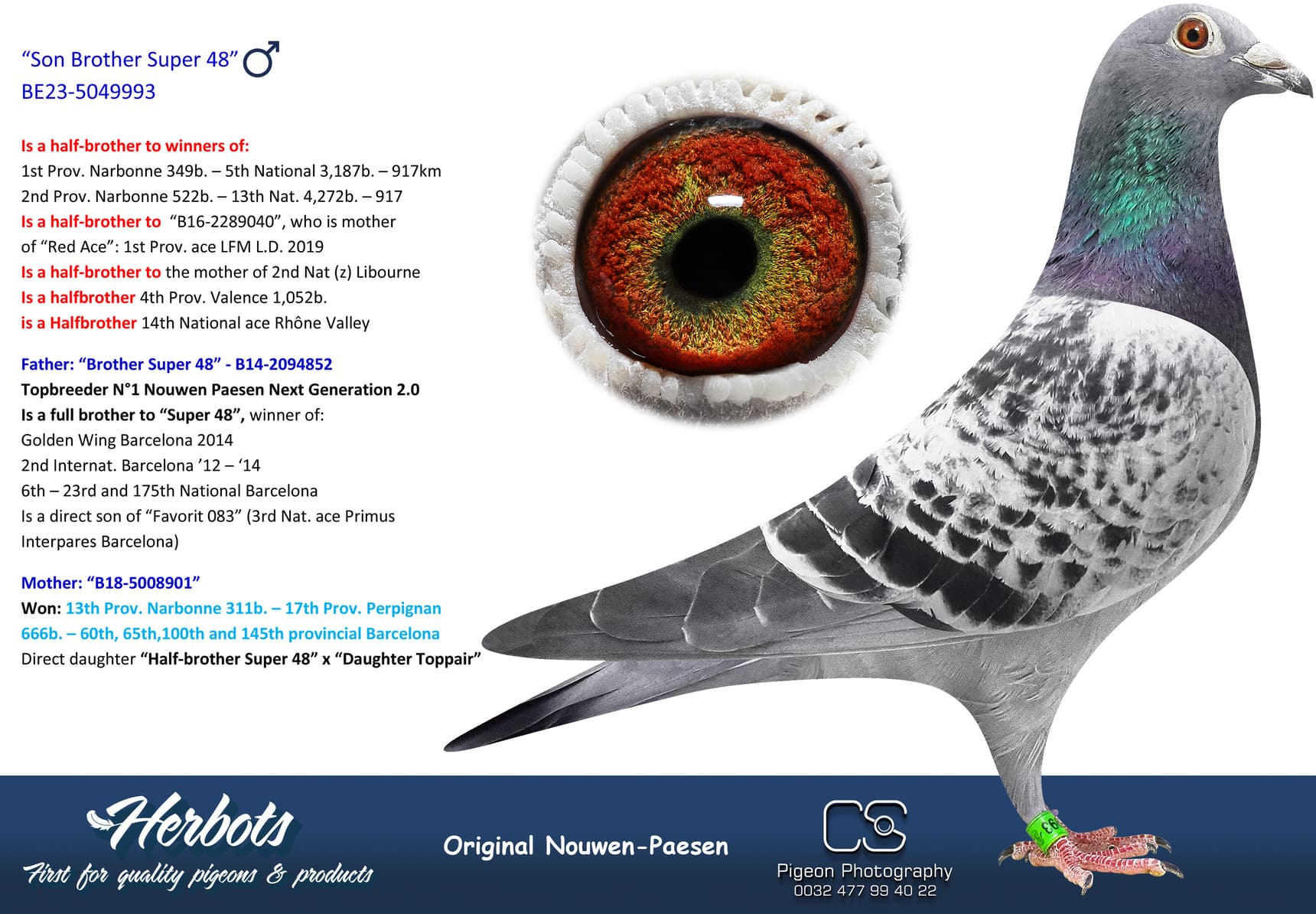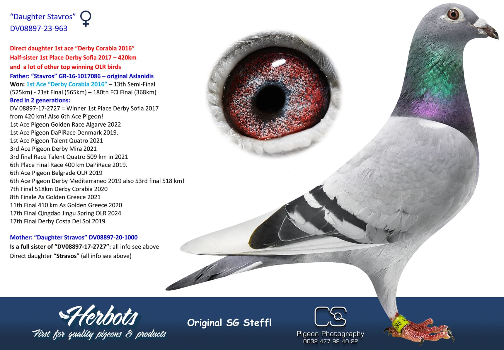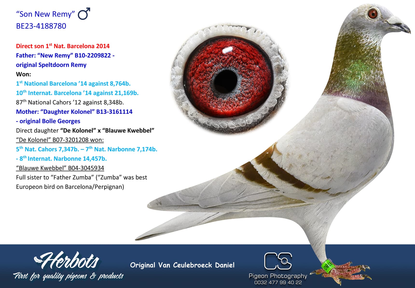 Full sister to “Father Zumba” (“Zumba” was best Europeon bird on Barcelona/Perpignan)