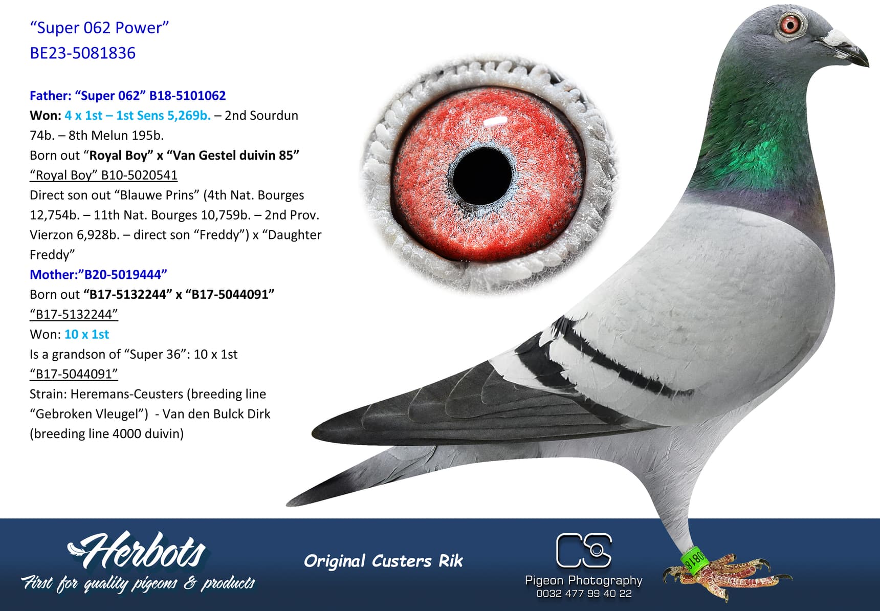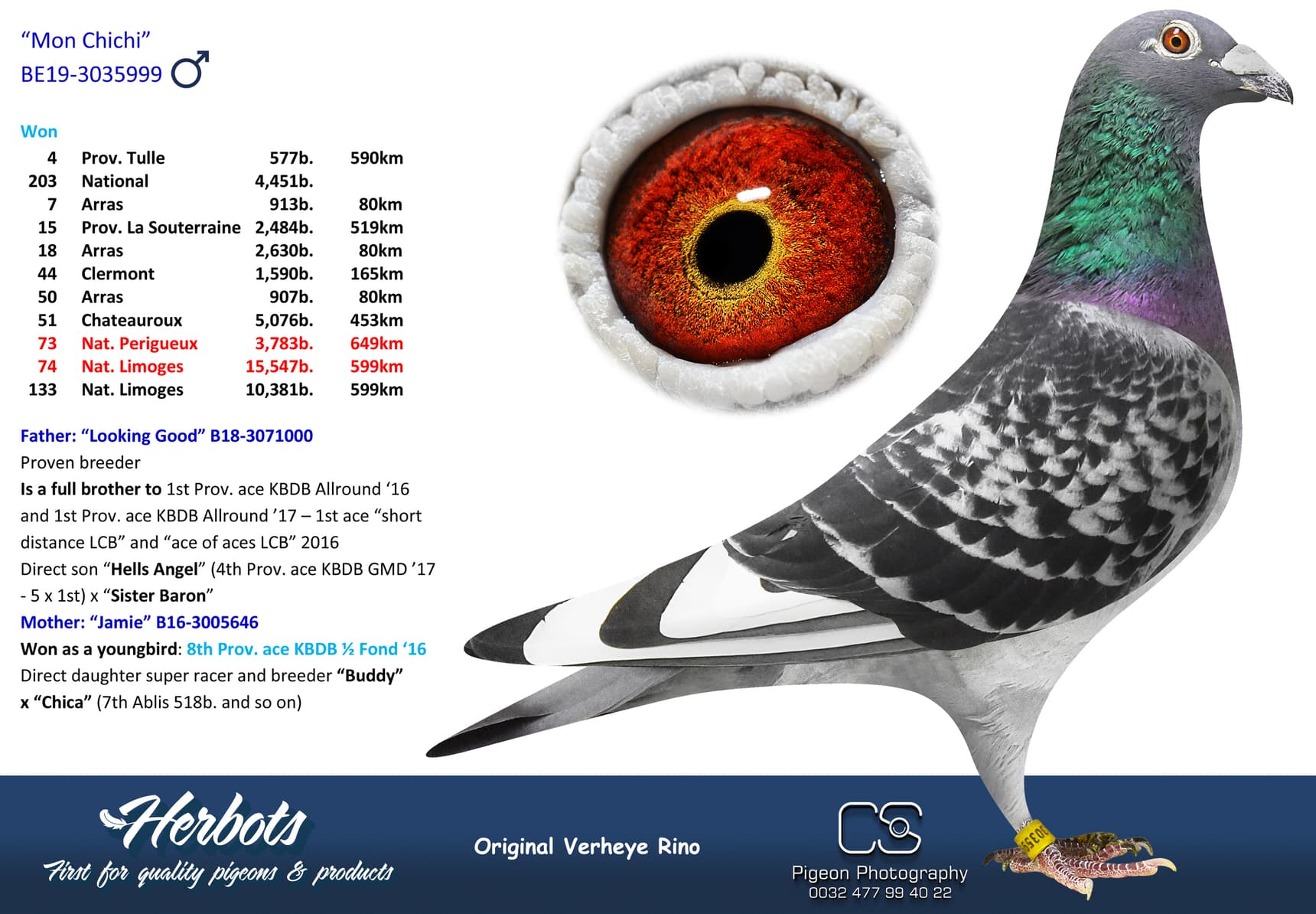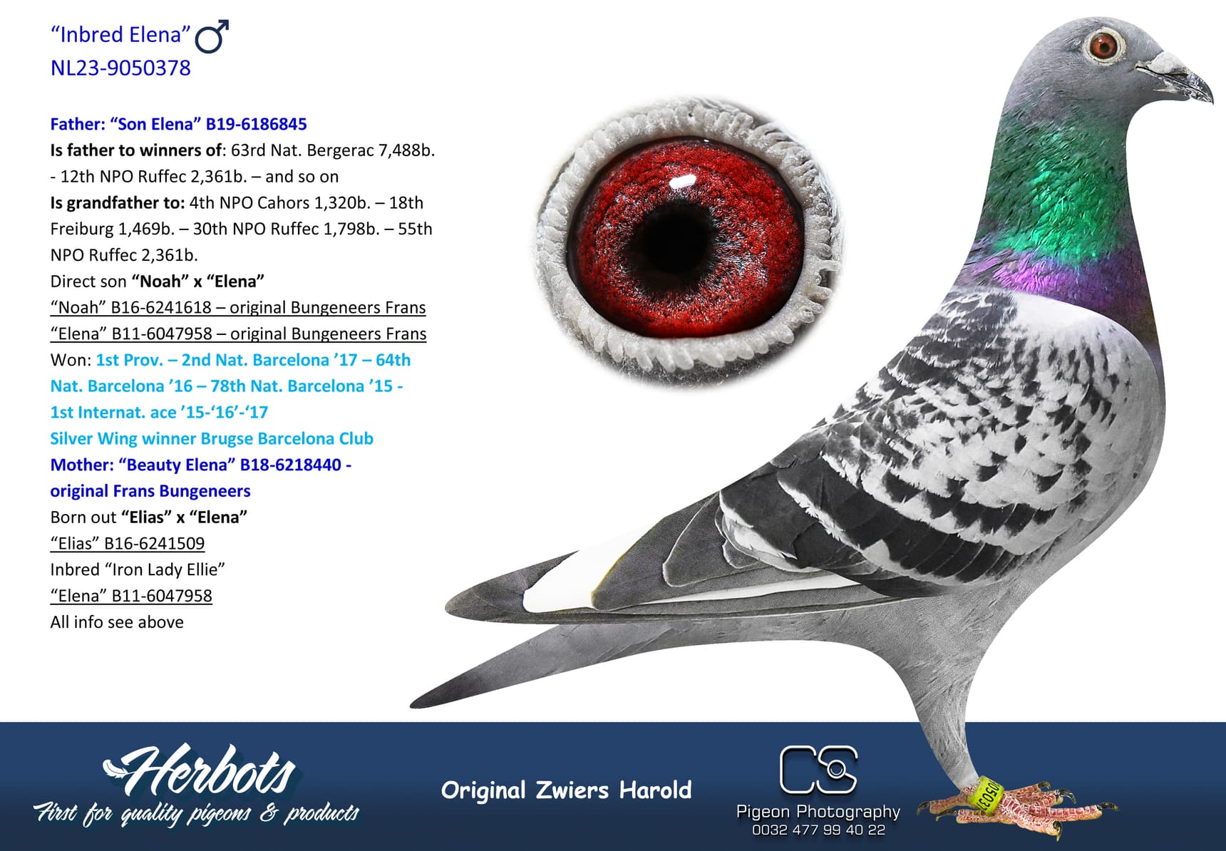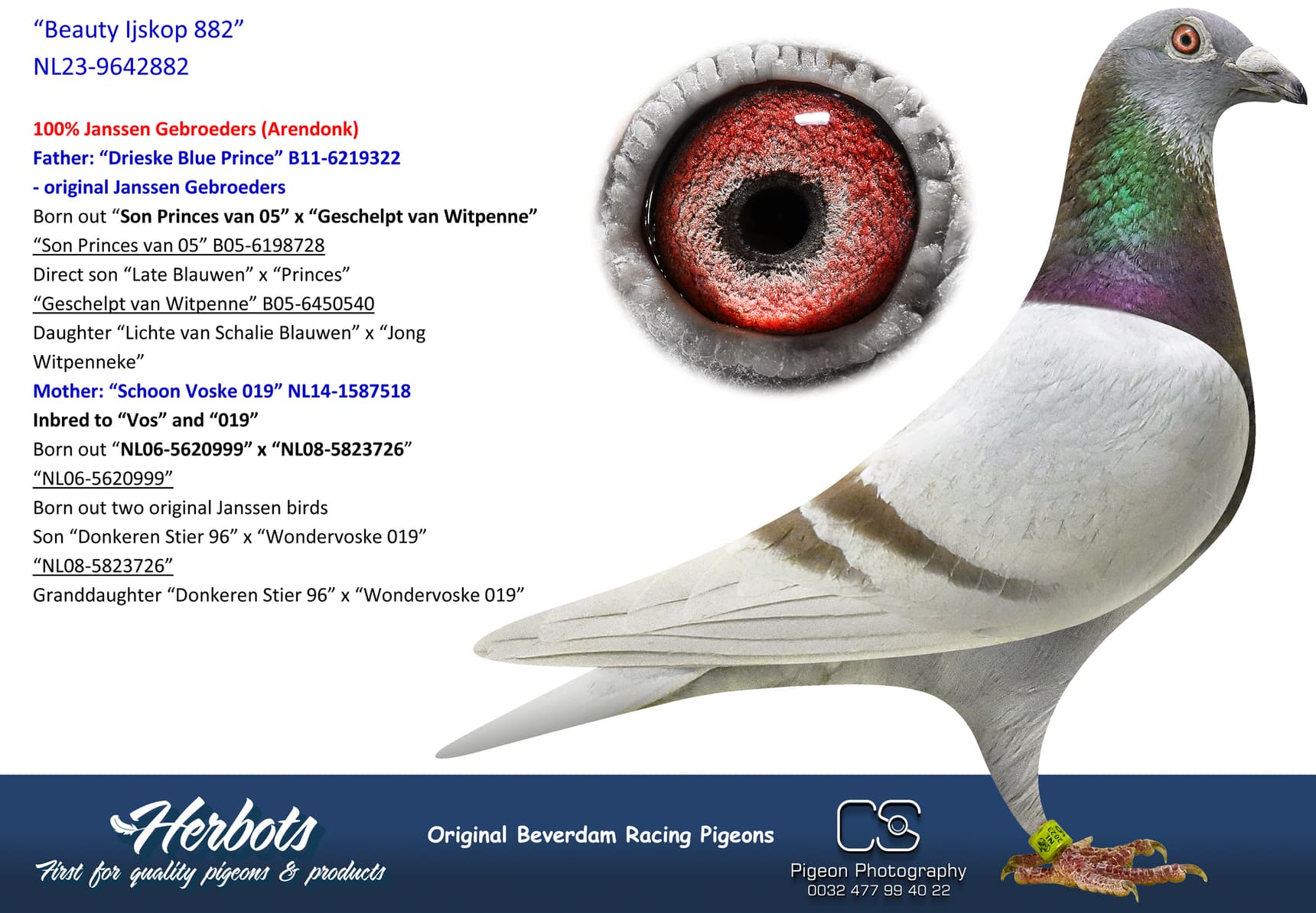 Direct son out “Blauwe Prins” (4th Nat. Bourges 12,754b. – 11th Nat. Bourges 10,759b. – 2nd Prov. Vierzon 6,928b. – direct son “Freddy”) x “Daughter Freddy”