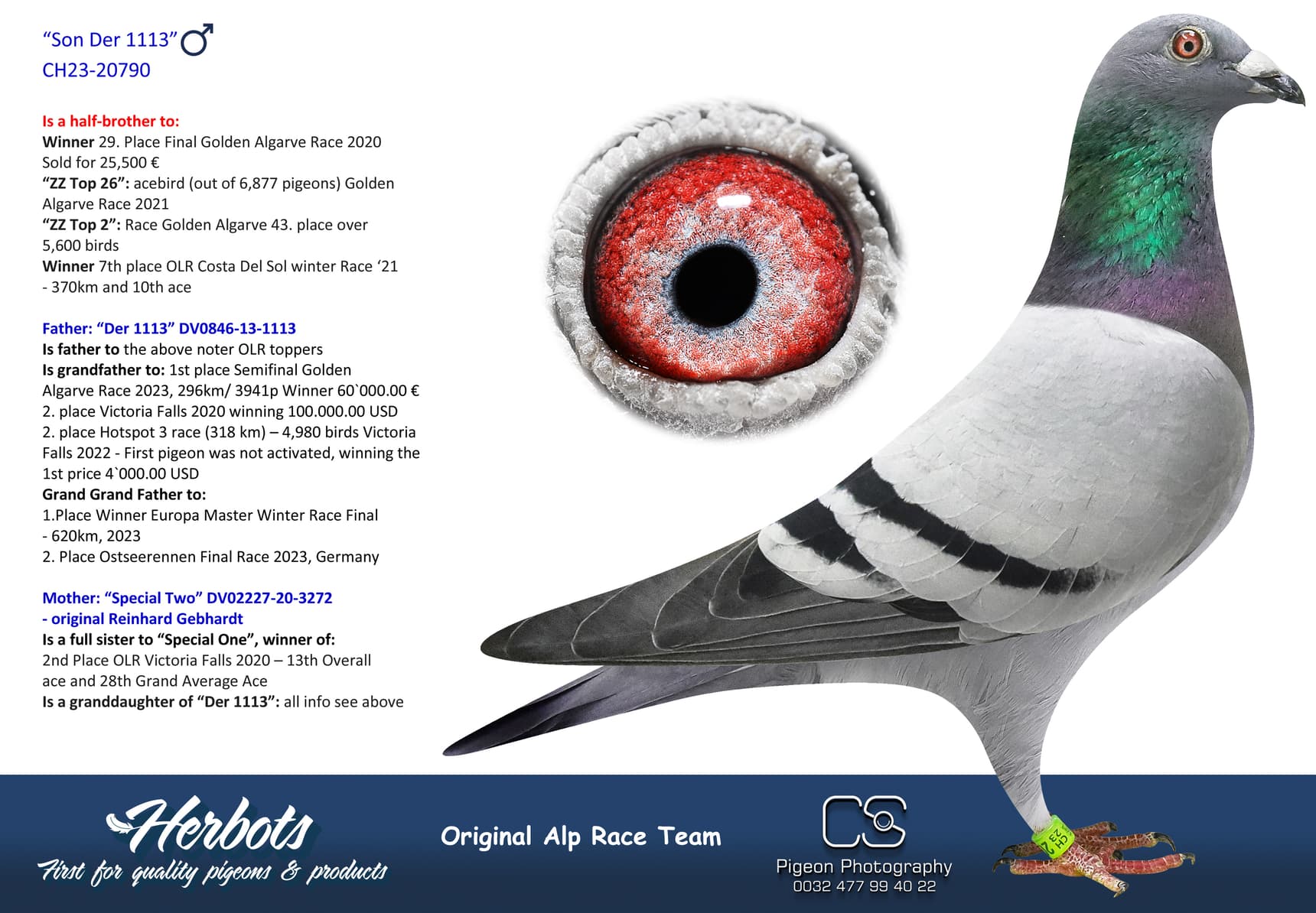 Born out “268” B14-4256268 (original Flanders Collection - son “Safier 691” x “Daughter Euro” ) x “Safyra II” (won 5th Best national ace short distance 2016 – 5th/6,761b. – 9th/7,352b. – 9th/5,986b.- 11th/6,422b. – original Flanders Collection)