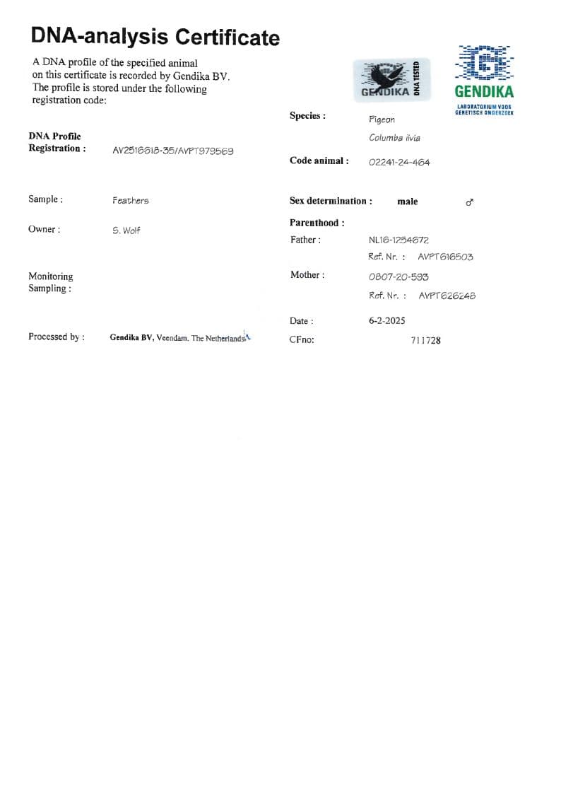 Breeder: ALP RACE TEAM/SIMON WOLF 阿尔卑赛鸽队