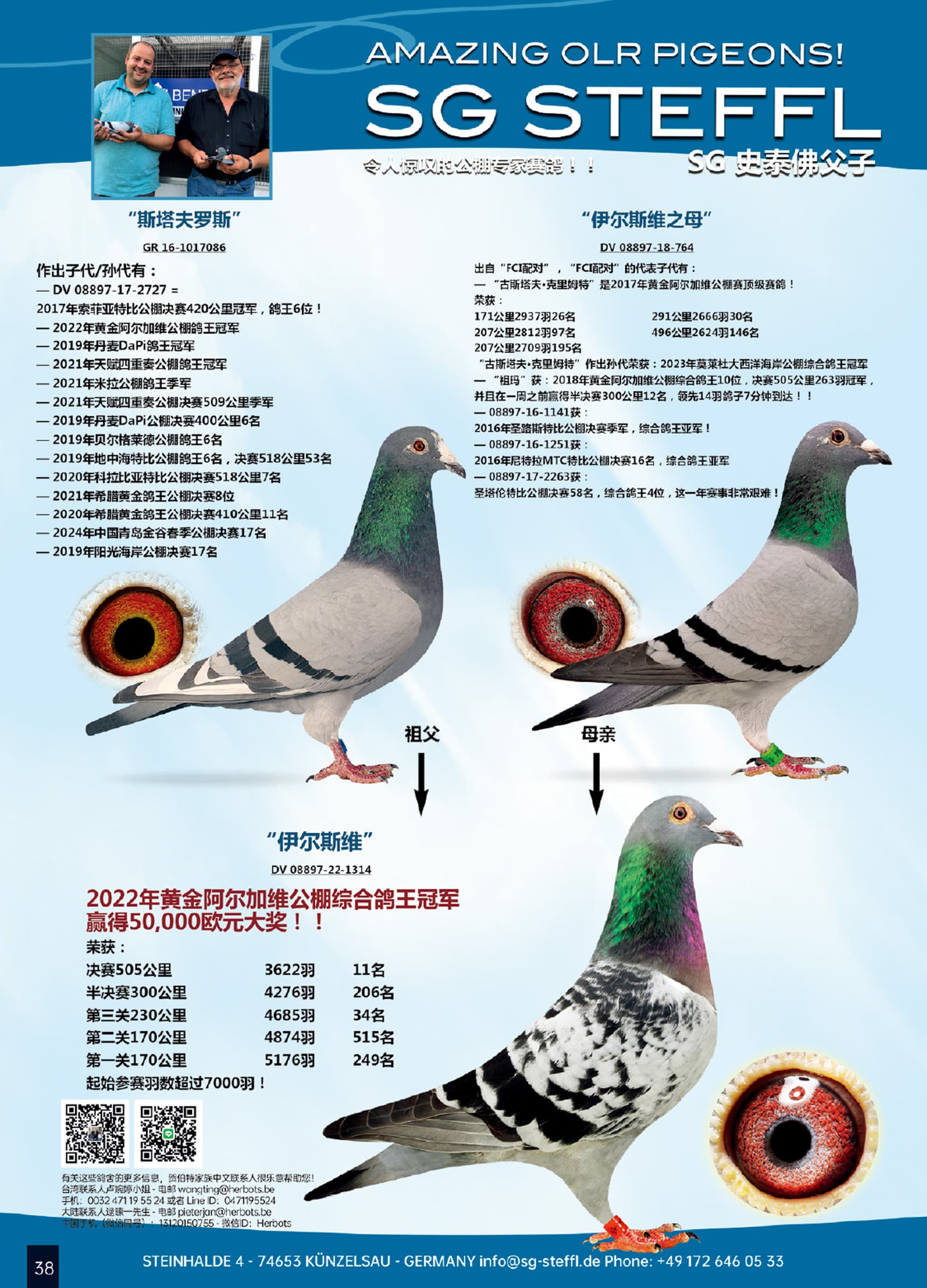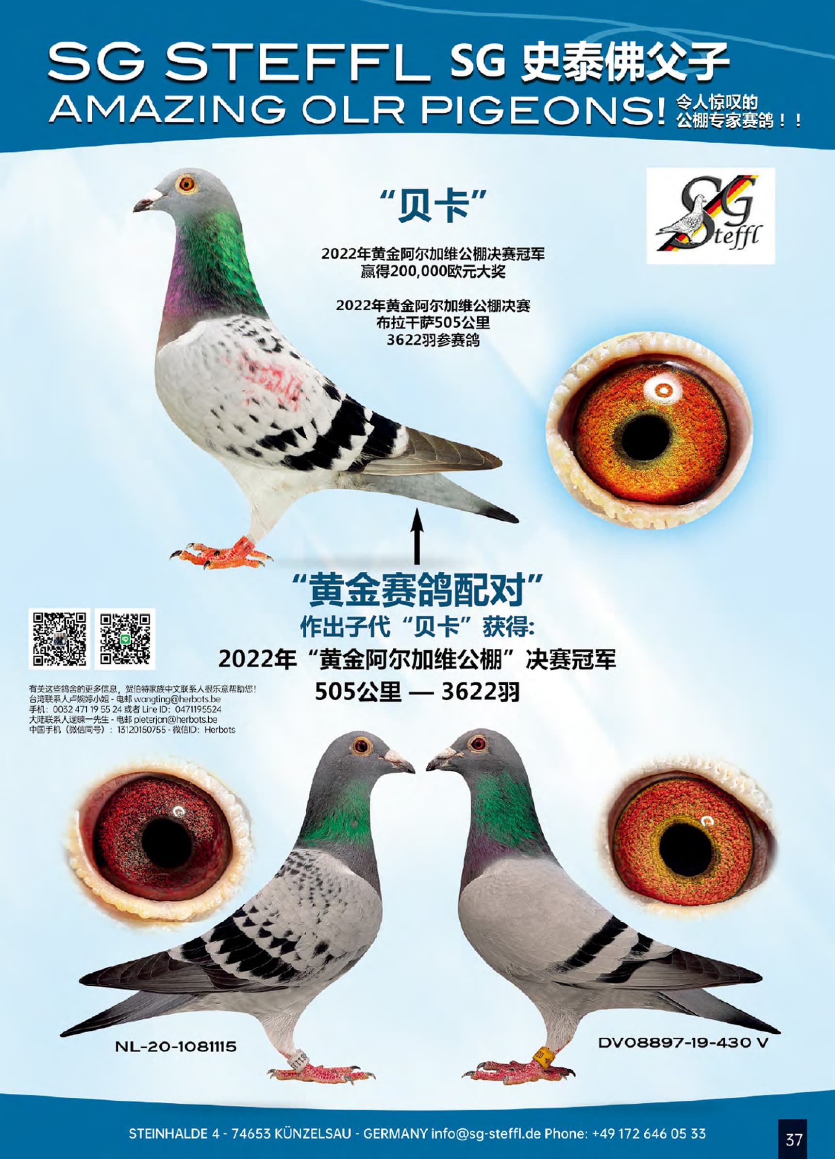 x “Belle Air” (won 1st/1,036b. – 628km – top breeding hen -