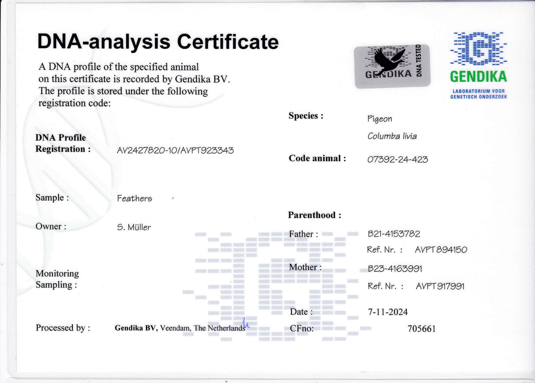 Is a full sister to 2nd best yearbird of Belgium on 5 nat. races GMD 2019