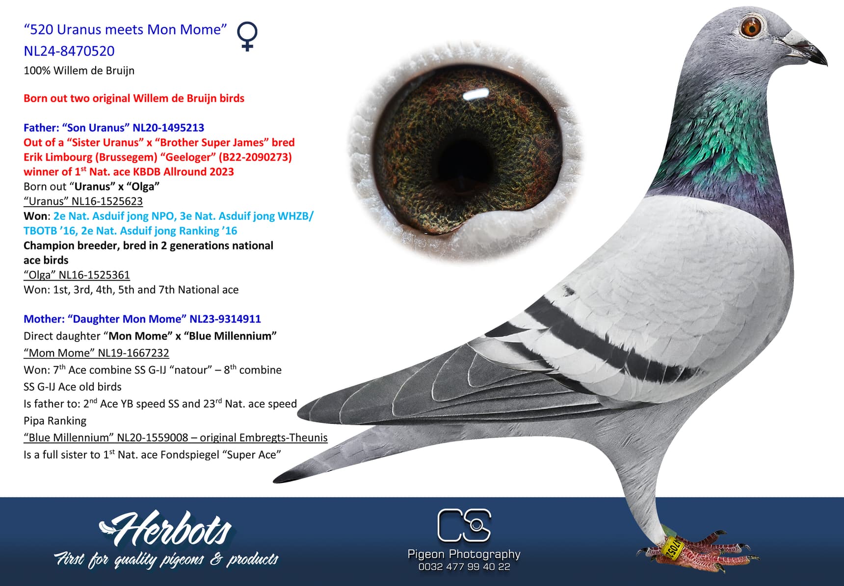 “633-23” – “Olympic Pure Gold” – 1st Olympiad Cat F. – 1st World Best Pigeon ‘23