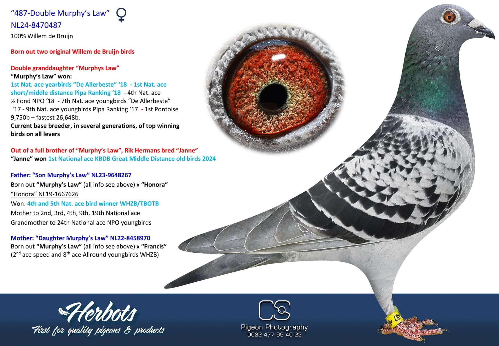Direct daughter champion bird “Murphy’s Law”