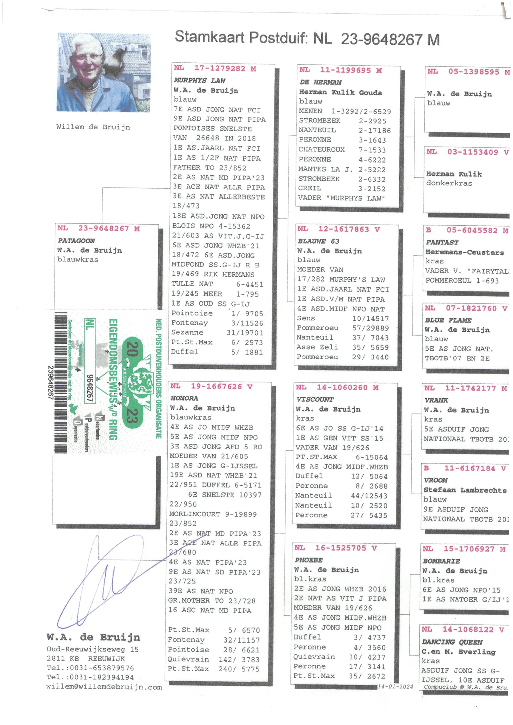 “23-852”: 2nd Nat. ace ½ Fond Pipa Ranking 2023 – 3rd Nat. ace “De Allerbeste” – 3rd Nat. ace allround Pipa Ranking
