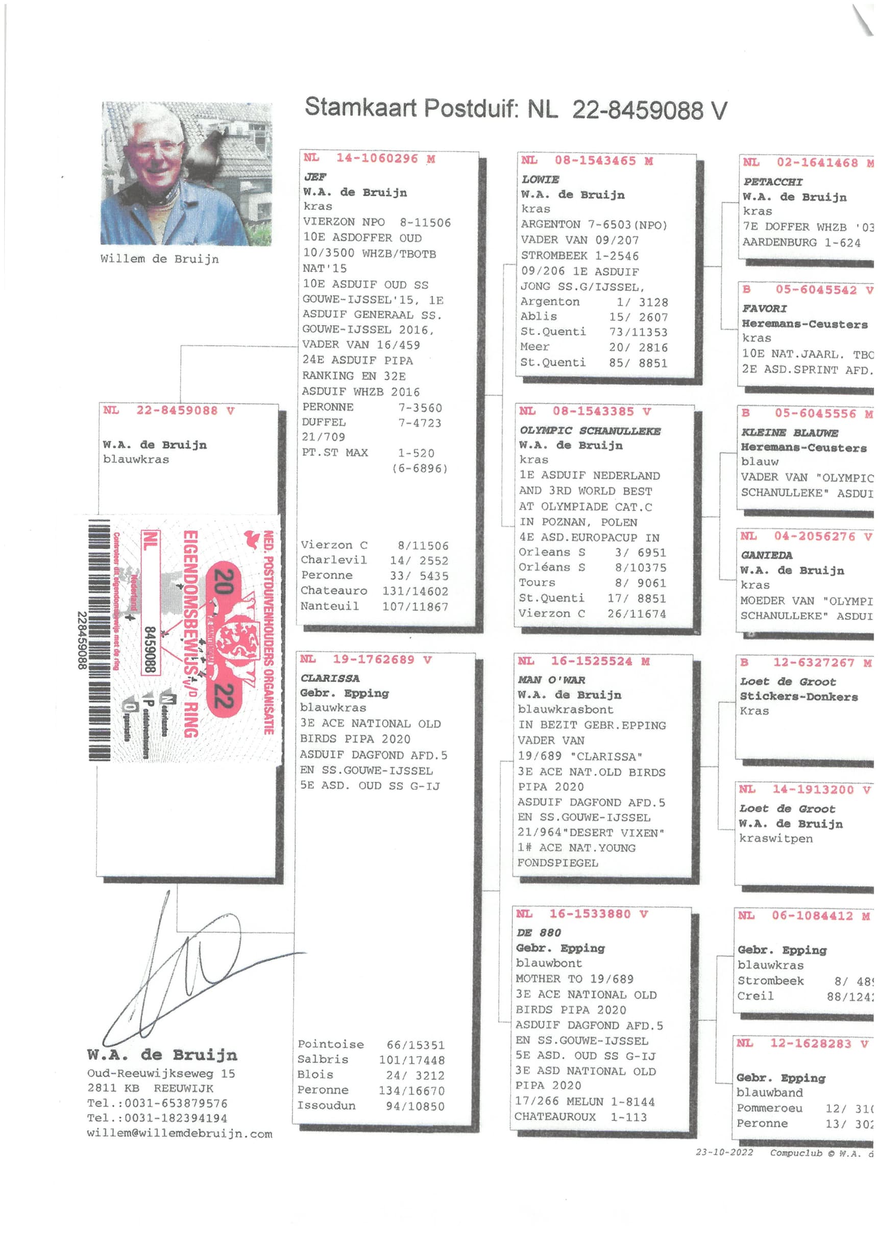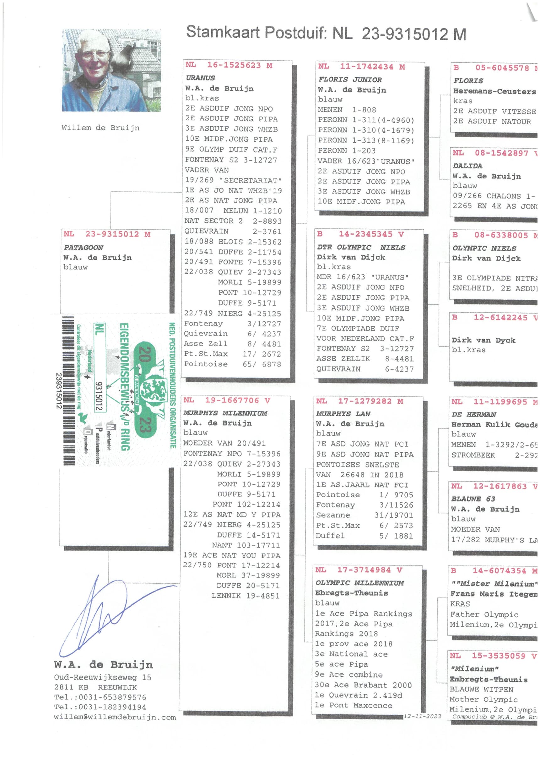Breeder: 100% WILLEM DE BRUIJN 纯威廉迪布恩血统