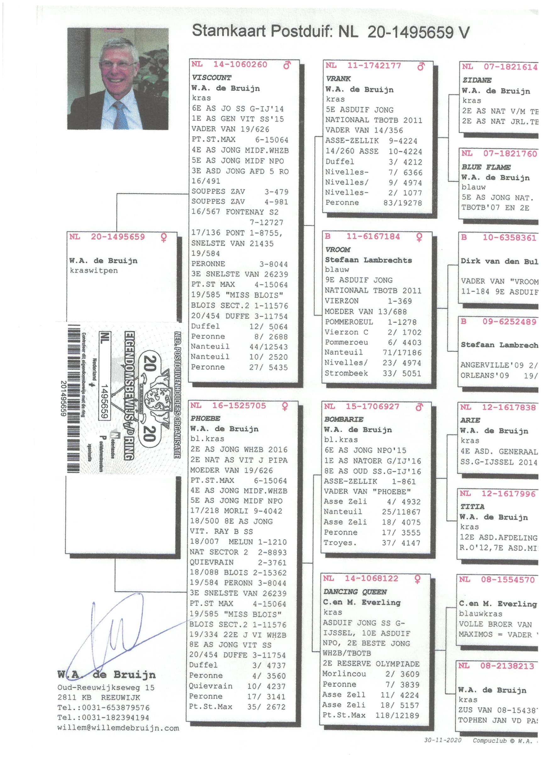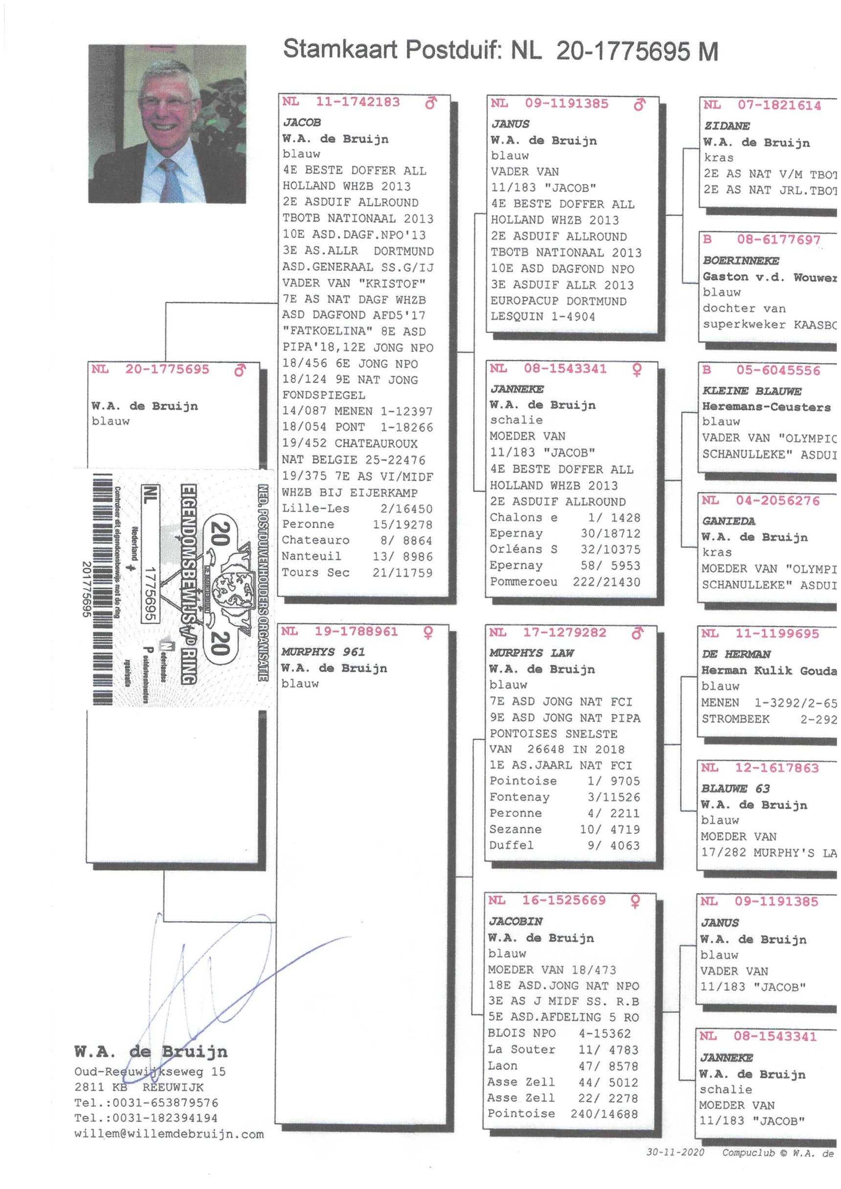 Breeder: 100% WILLEM DE BRUIJN 纯威廉迪布恩血统