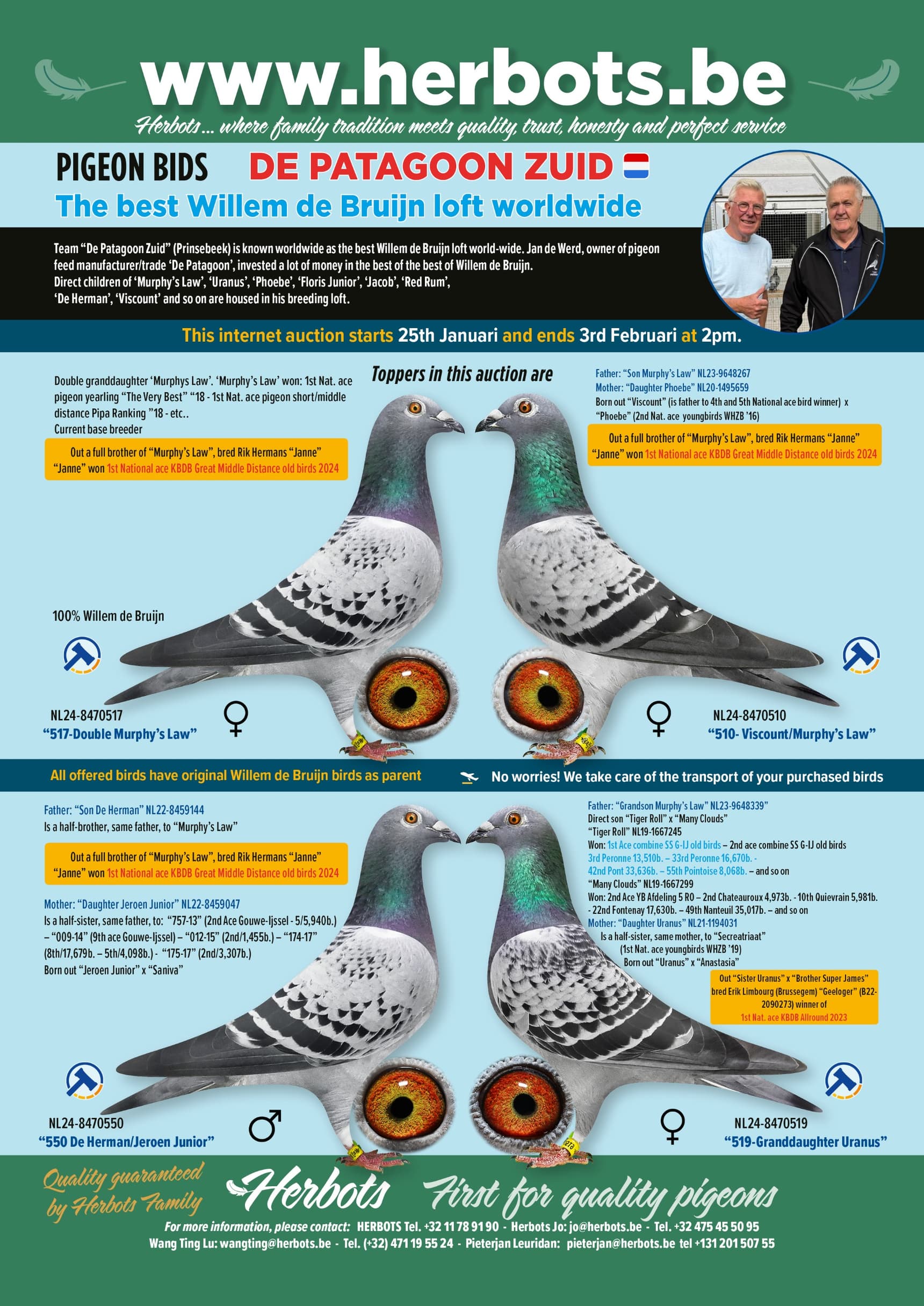 pigeon bids "team patagoon zuid" - part 3 - the best willem de bruijn loft world-wide.