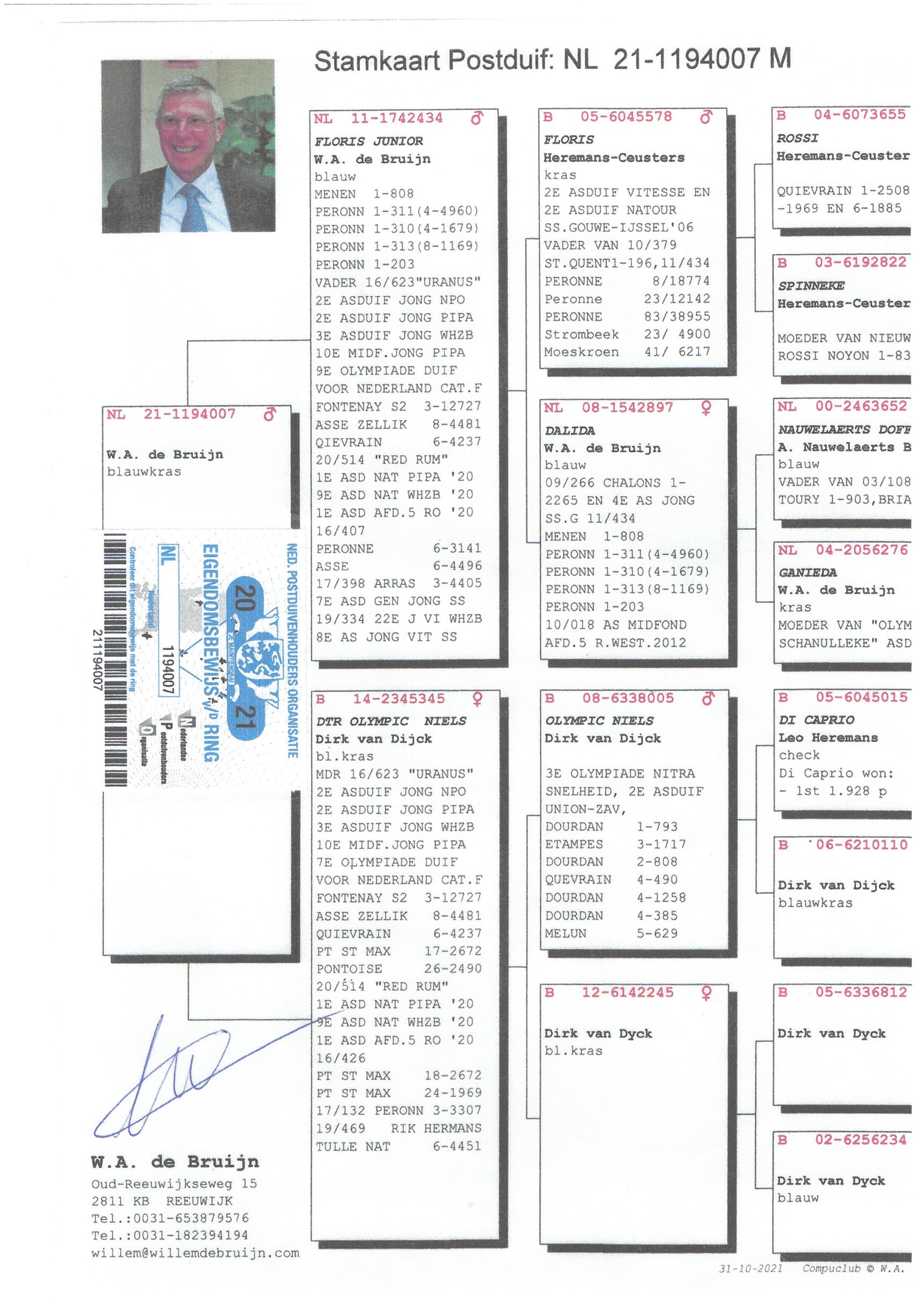 Breeder: 100% WILLEM DE BRUIJN 纯威廉迪布恩血统