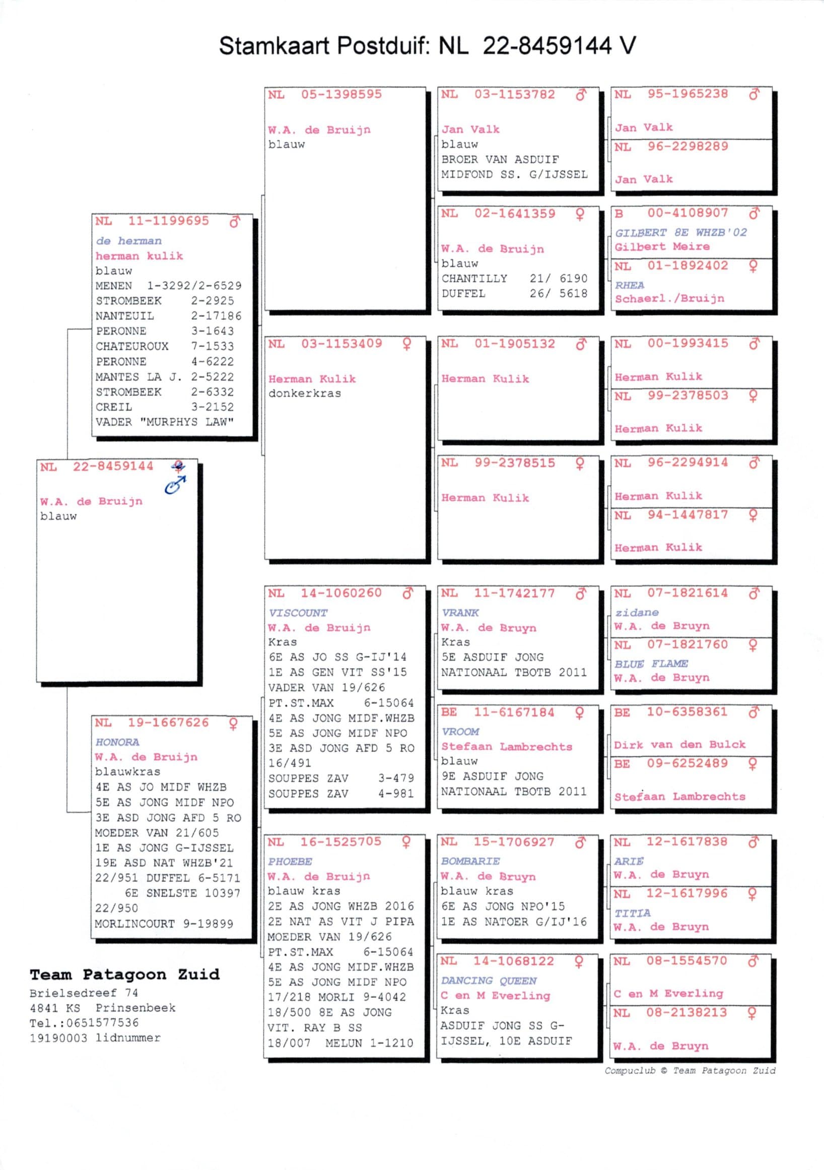 Breeder: 100% WILLEM DE BRUIJN 纯威廉迪布恩血统