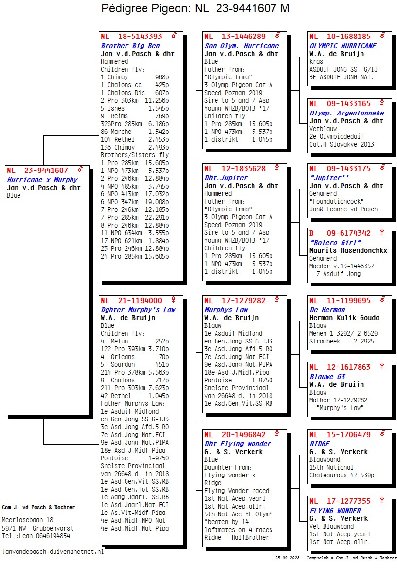 Breeder: TEAM VAN DE PASCH 杨·范德帕斯父女