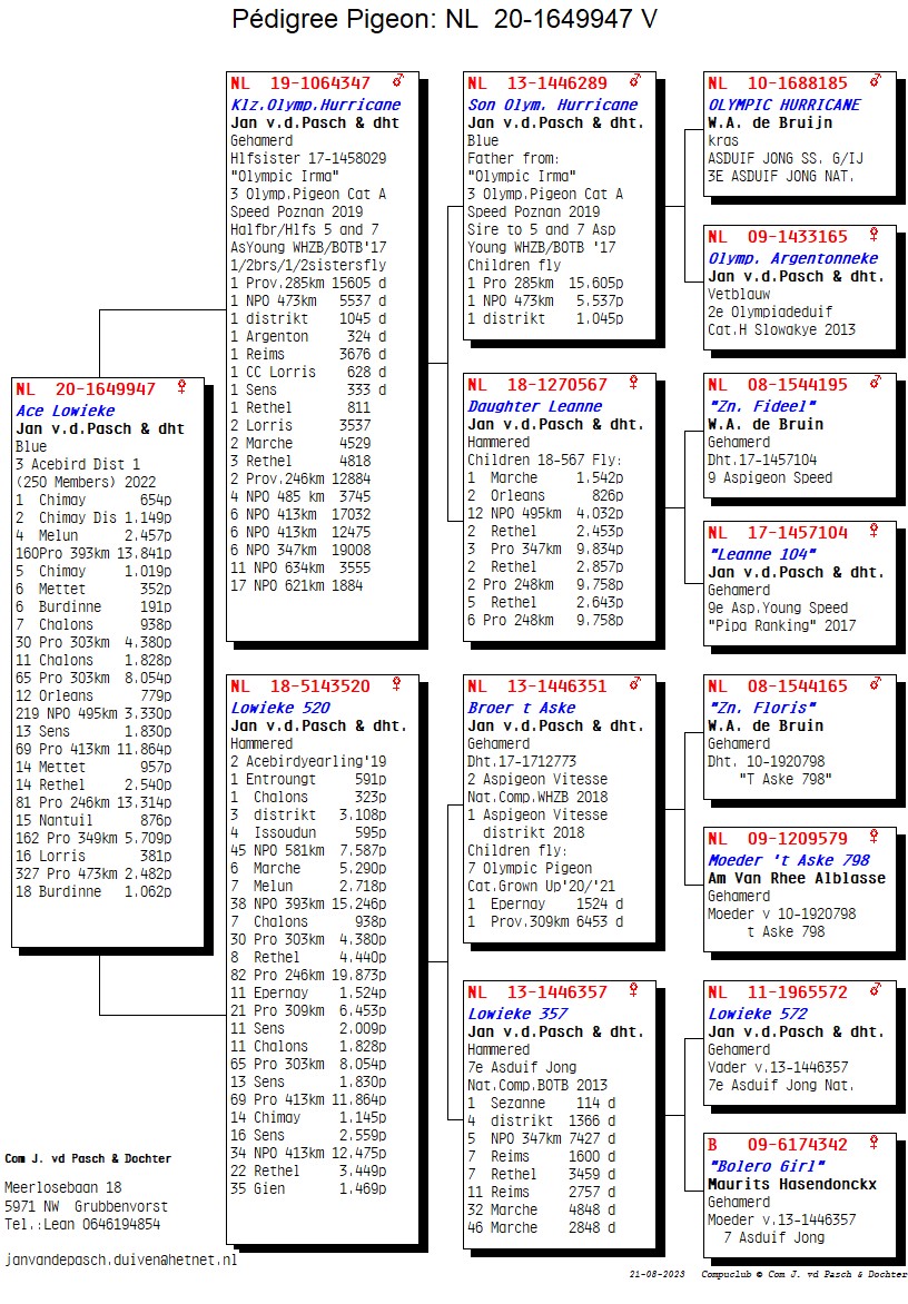 3rd Ace pigeon District North Afdeling 4 old birds 2022