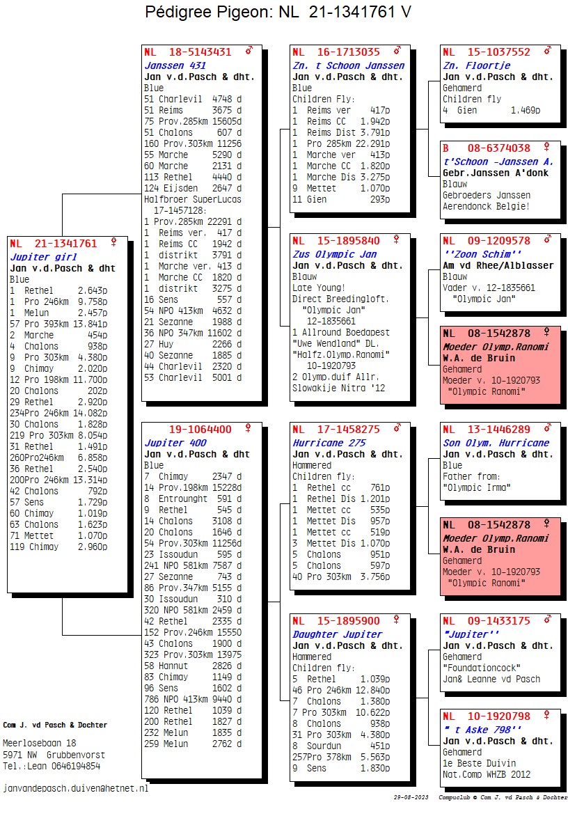 Breeder: TEAM VAN DE PASCH 杨·范德帕斯父女