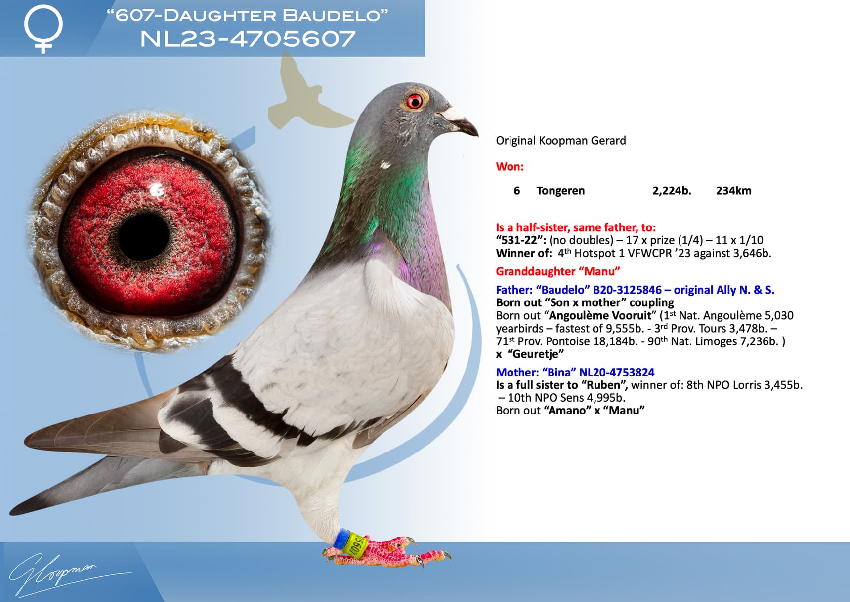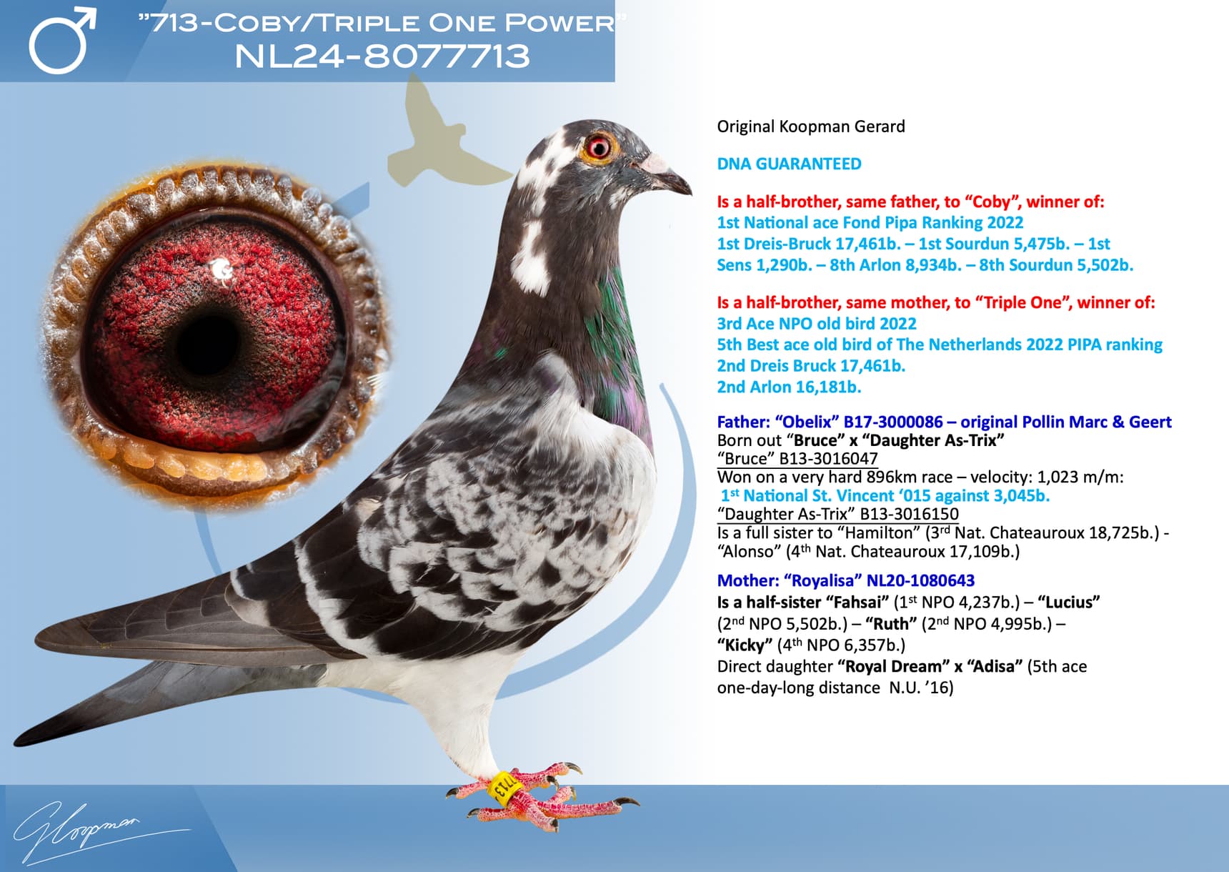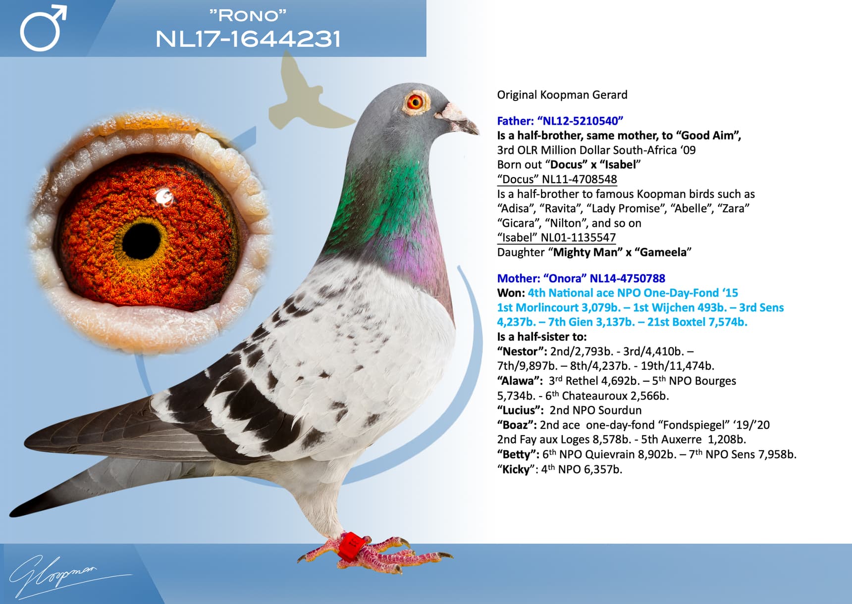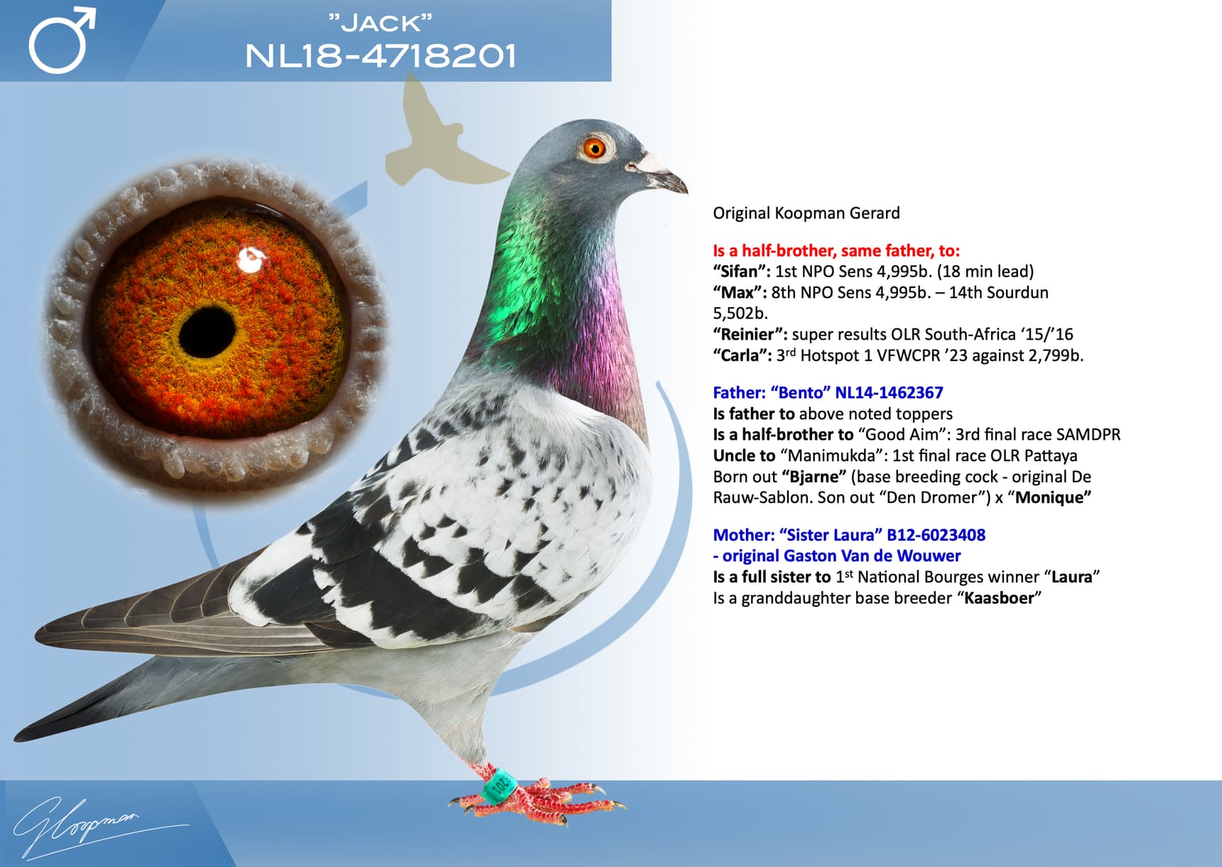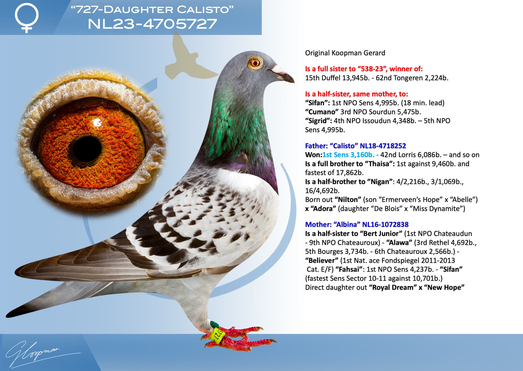 In total, Gerard is auctioning 623 birds. 153 will be sold in 2 public auctions (organization Sportblad De Duif) and 470 Koopman birds will be offered during 4 days (9-10-11 and 12 December) on internet auction Pigeon Bids (organization www.herbots.be.)