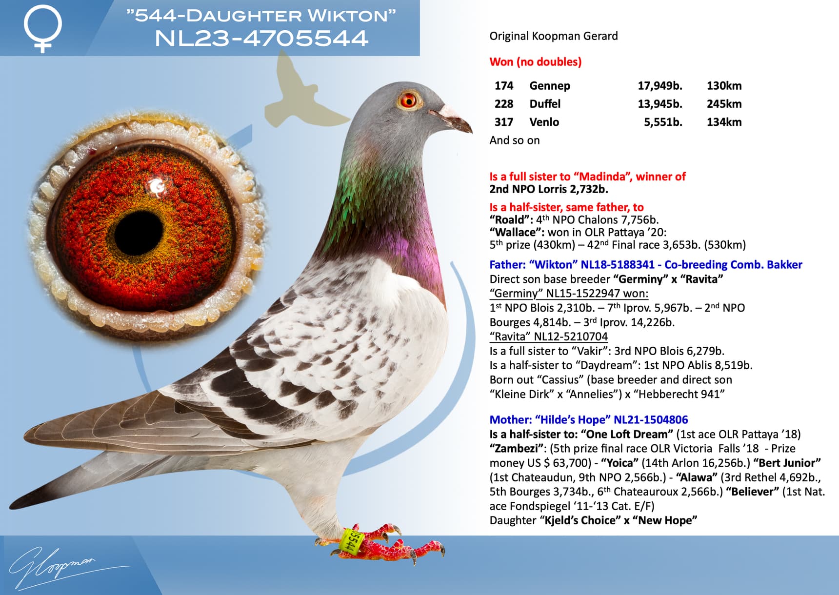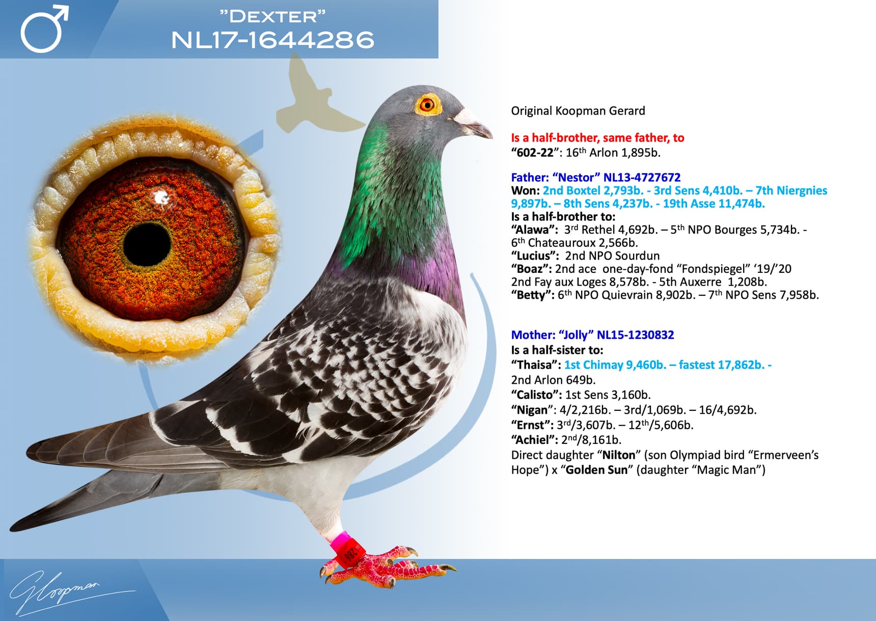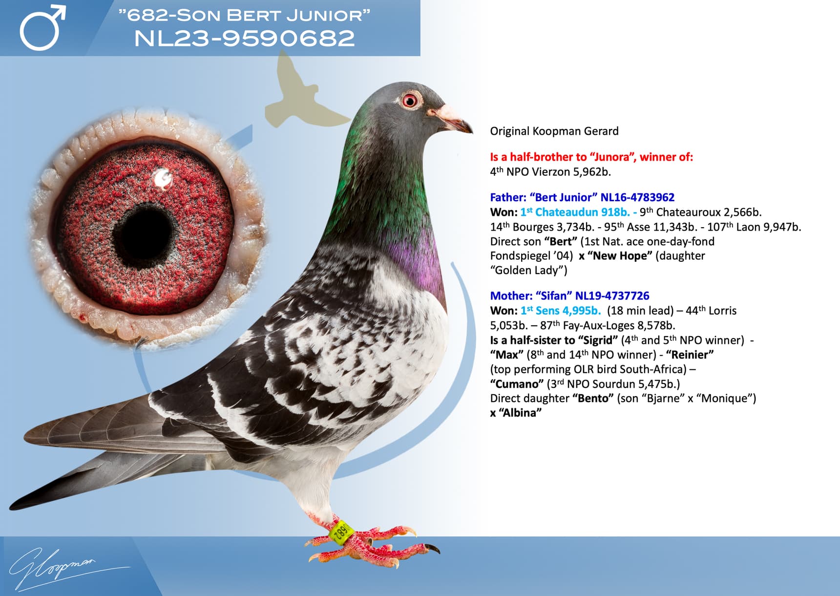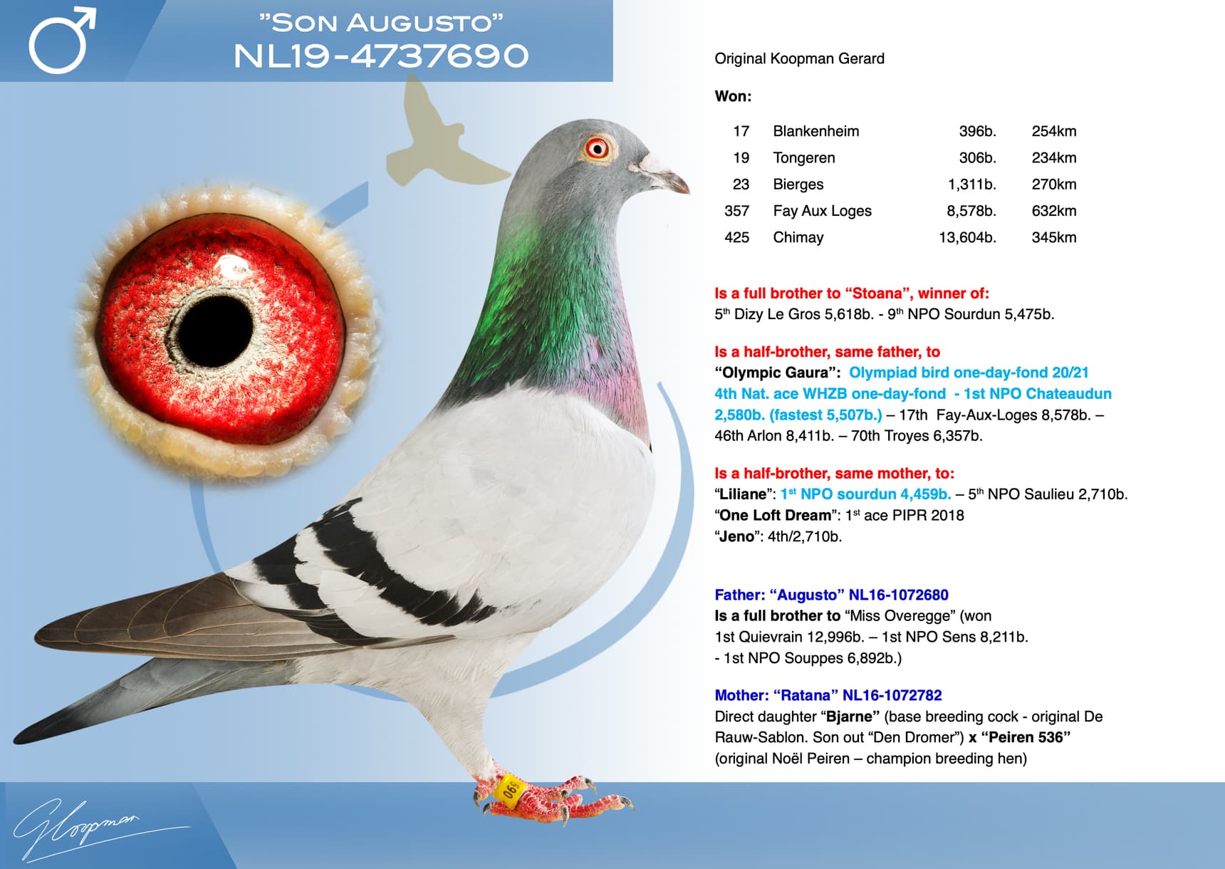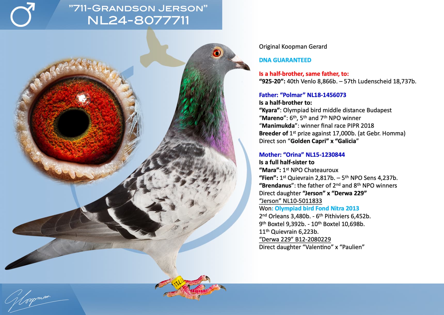 In total, Gerard is auctioning 623 birds. 153 will be sold in 2 public auctions (organization Sportblad De Duif) and 470 Koopman birds will be offered during 4 days (9-10-11 and 12 December) on internet auction Pigeon Bids (organization www.herbots.be.)