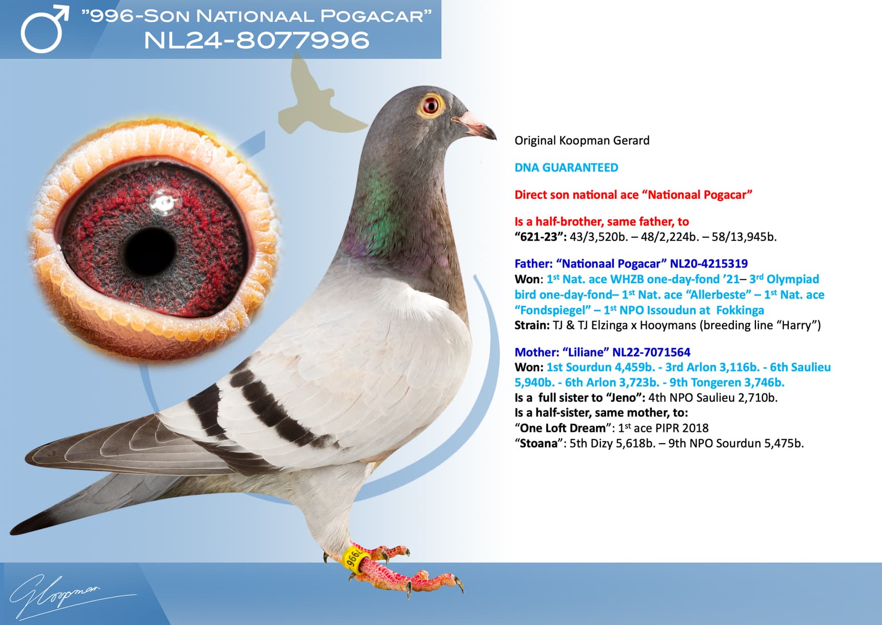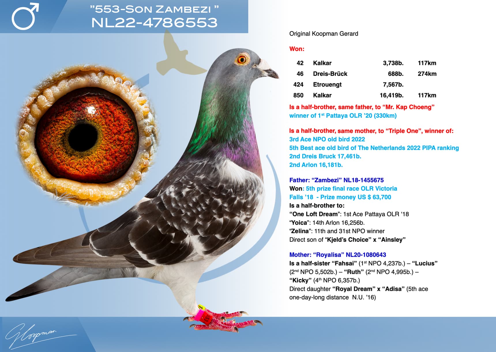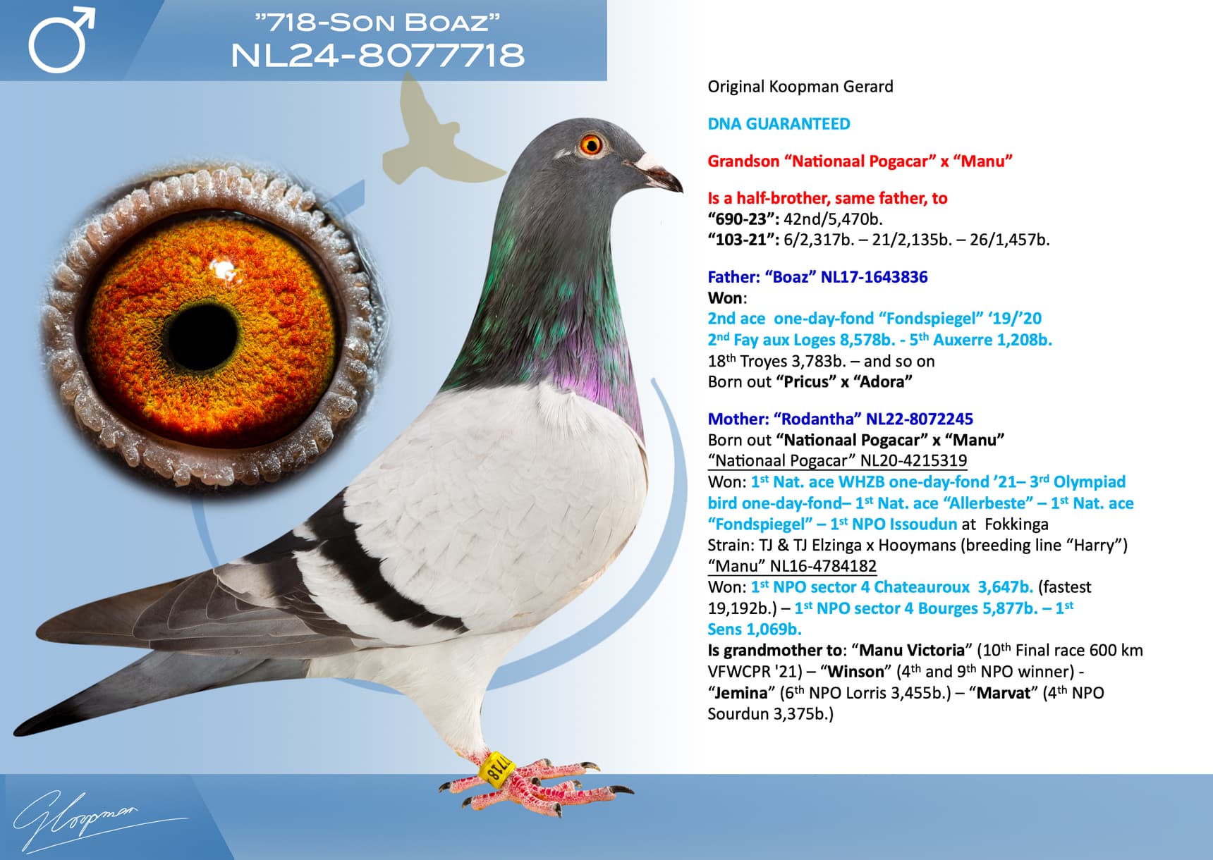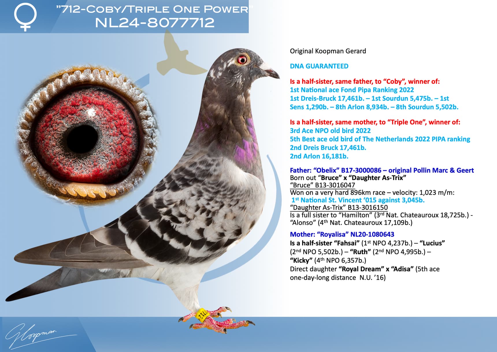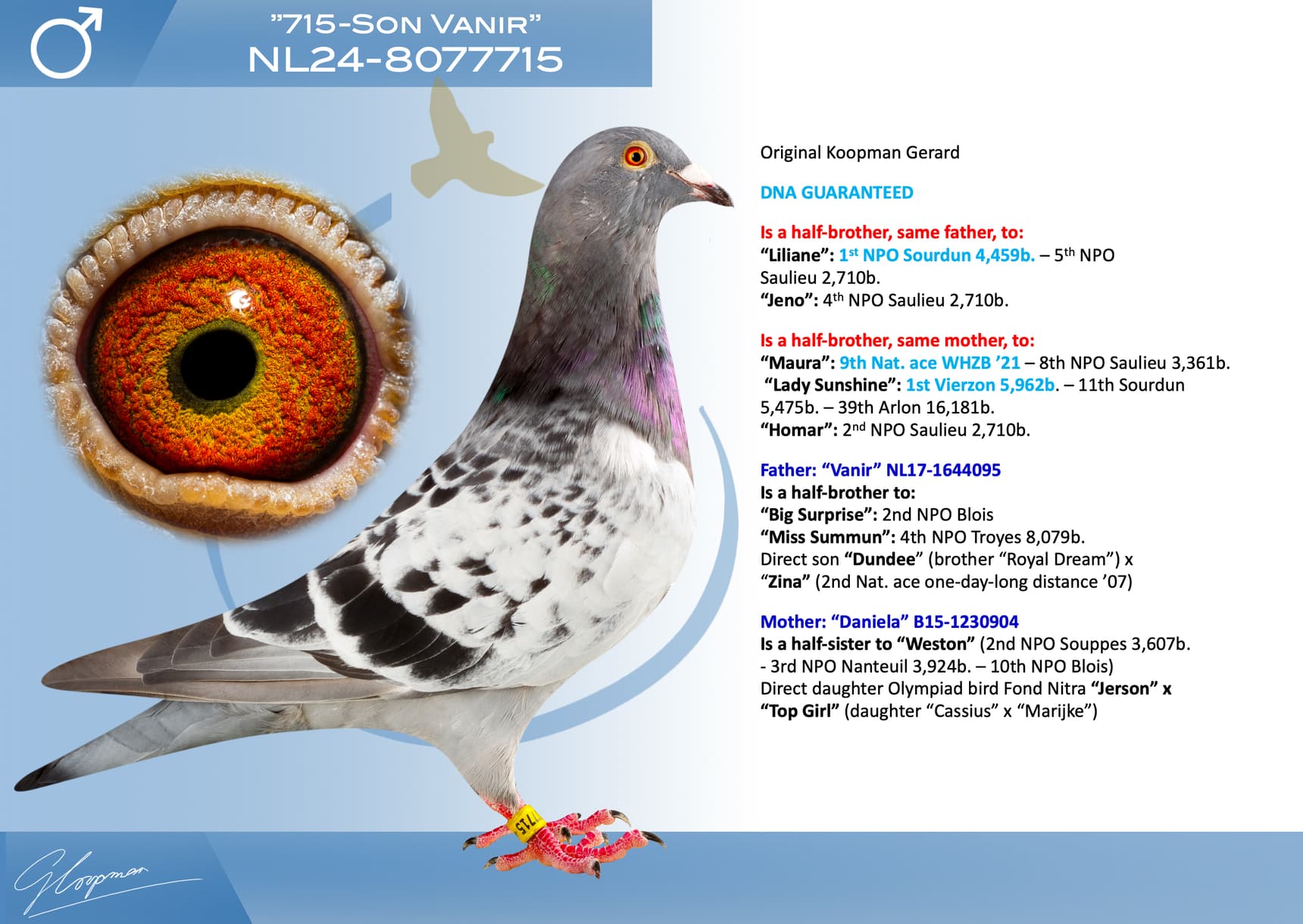 In total, Gerard is auctioning 623 birds. 153 will be sold in 2 public auctions (organization Sportblad De Duif) and 470 Koopman birds will be offered during 4 days (9-10-11 and 12 December) on internet auction Pigeon Bids (organization www.herbots.be.)
