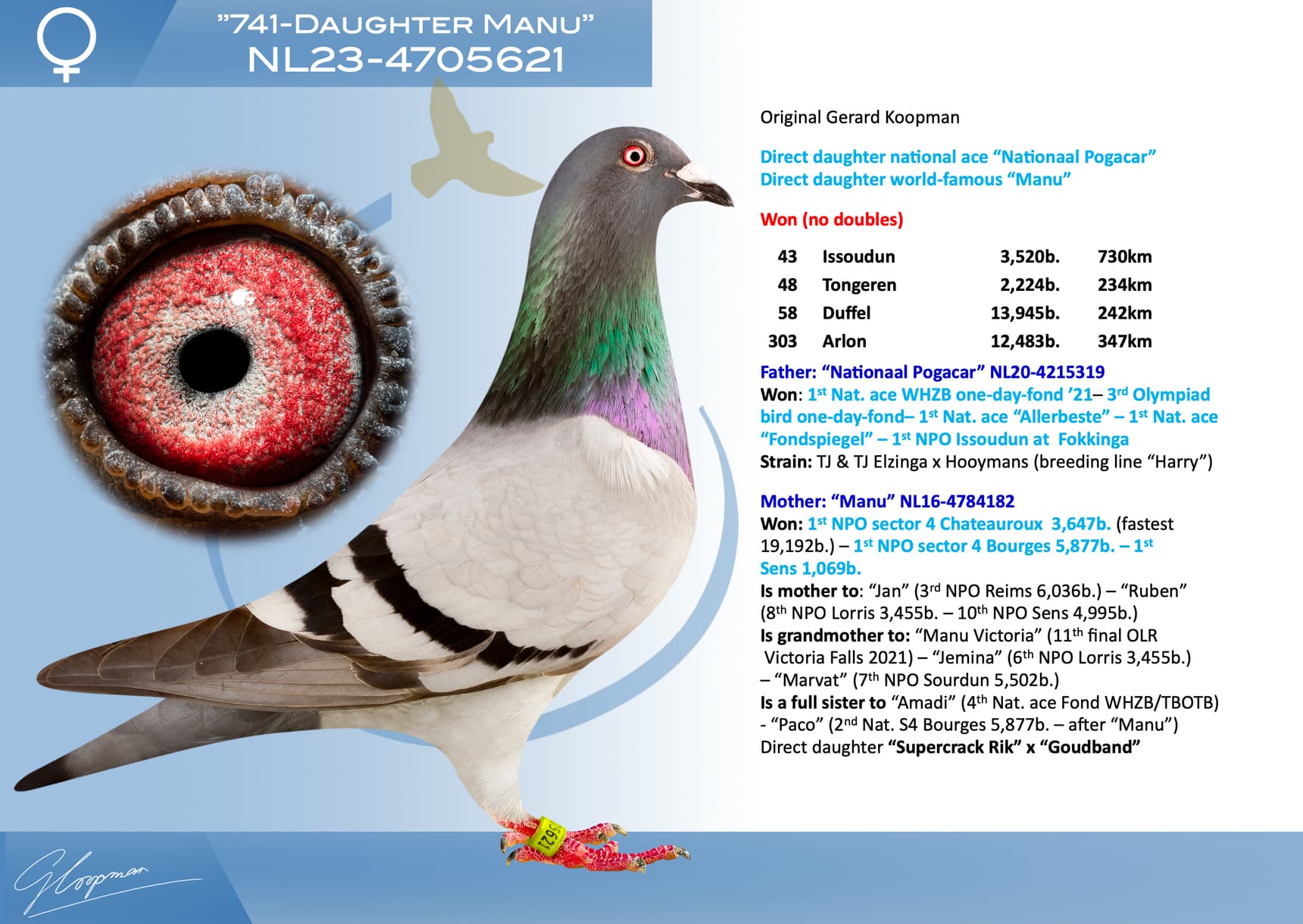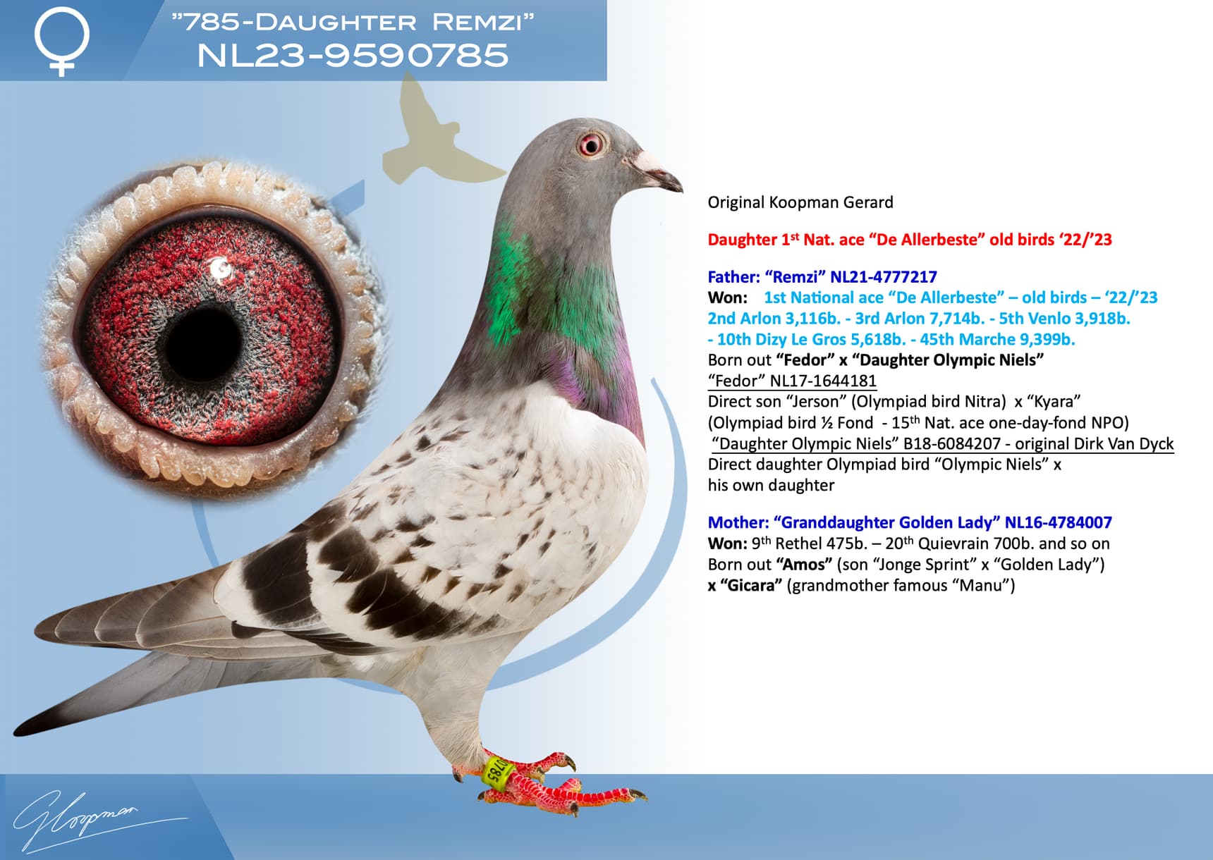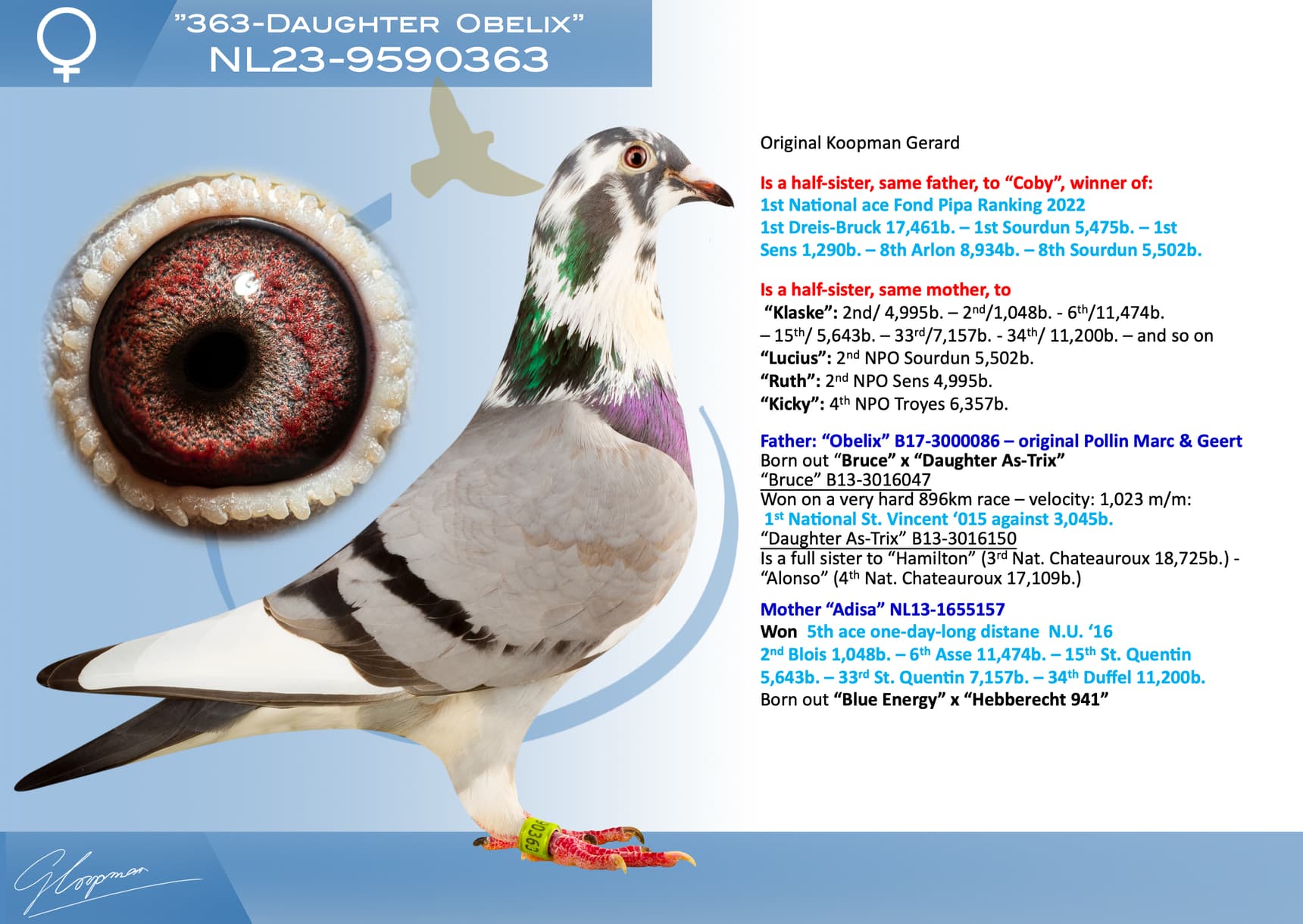Daughter 1st Nat. ace “De Allerbeste” old birds ‘22/’23