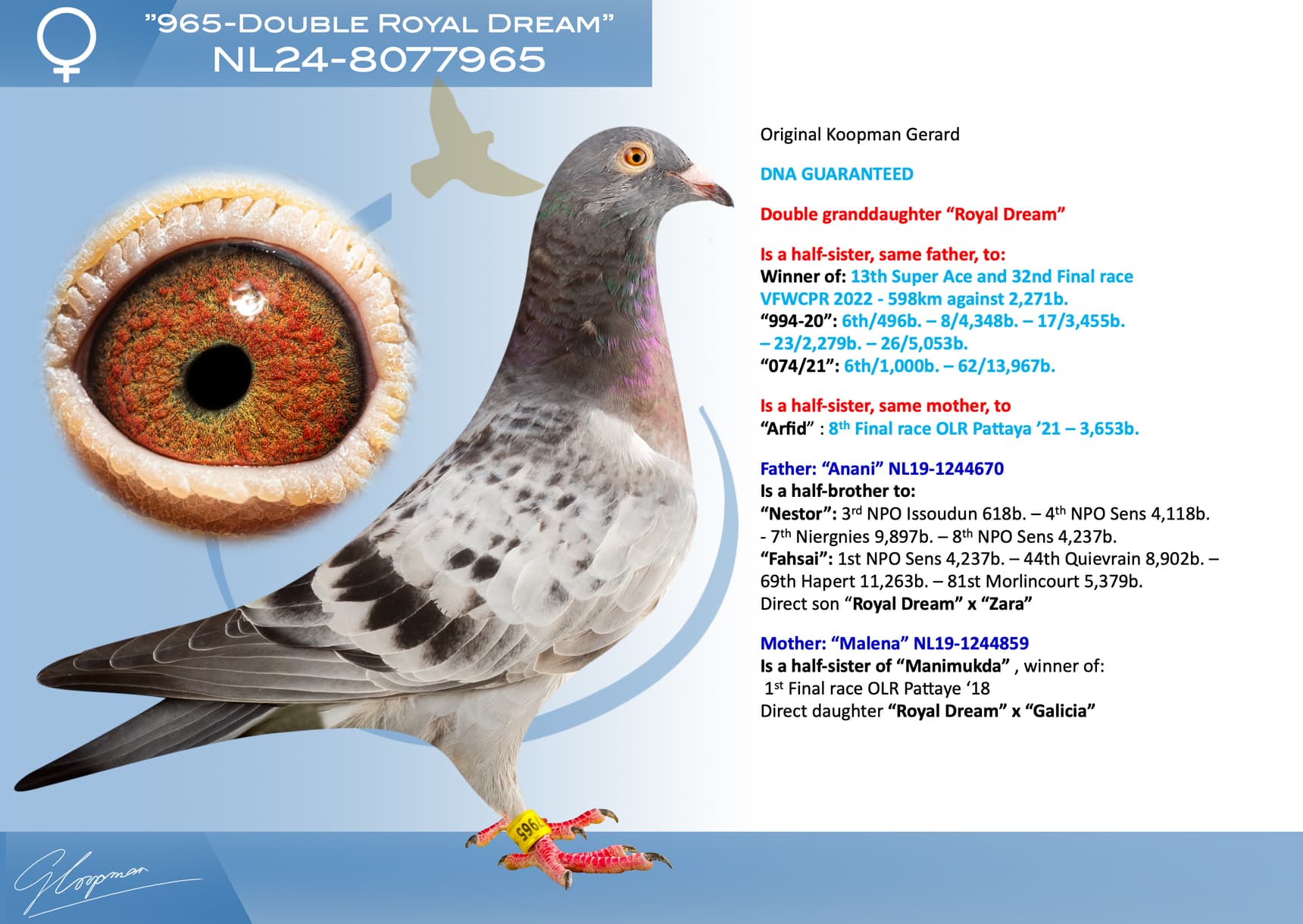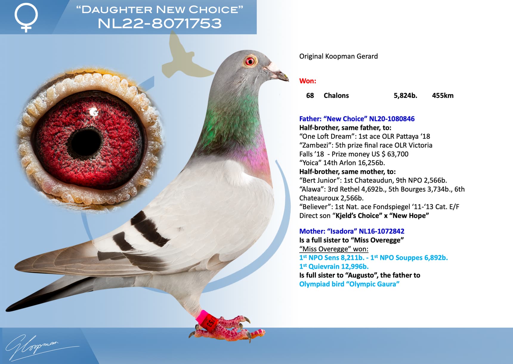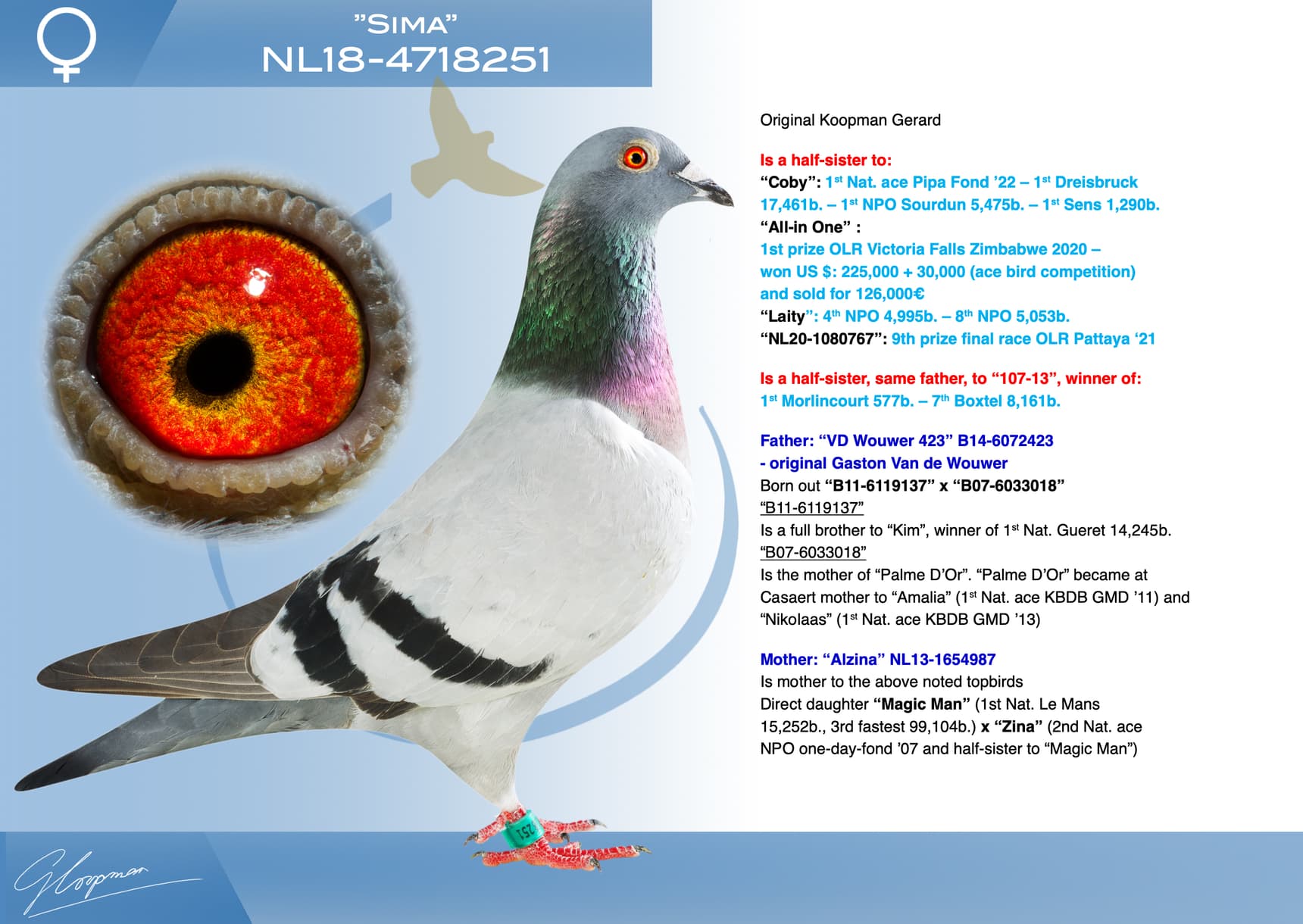 Daughter 1st Nat. ace “De Allerbeste” old birds ‘22/’23