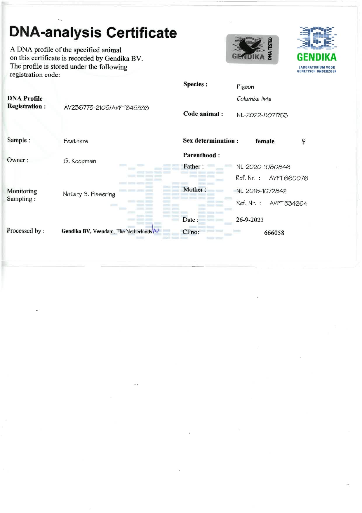 Breeder: KOOPMAN GERARD 吉拉德·考夫曼