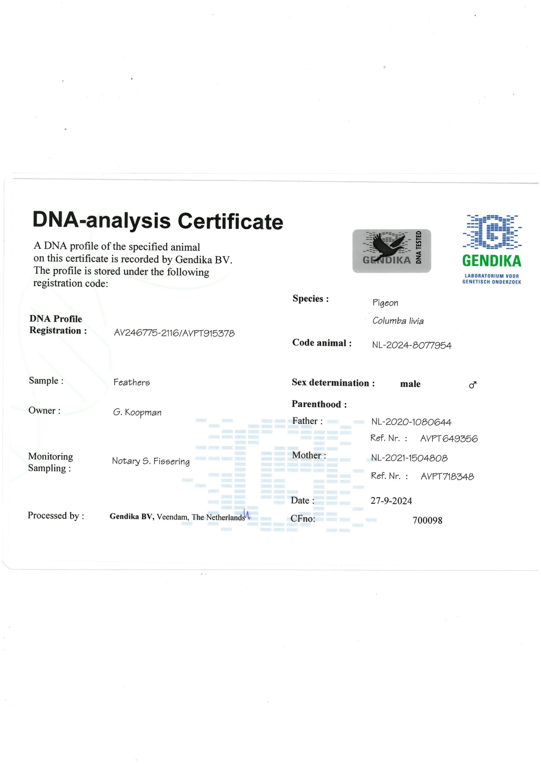 Breeder: KOOPMAN GERARD 吉拉德·考夫曼