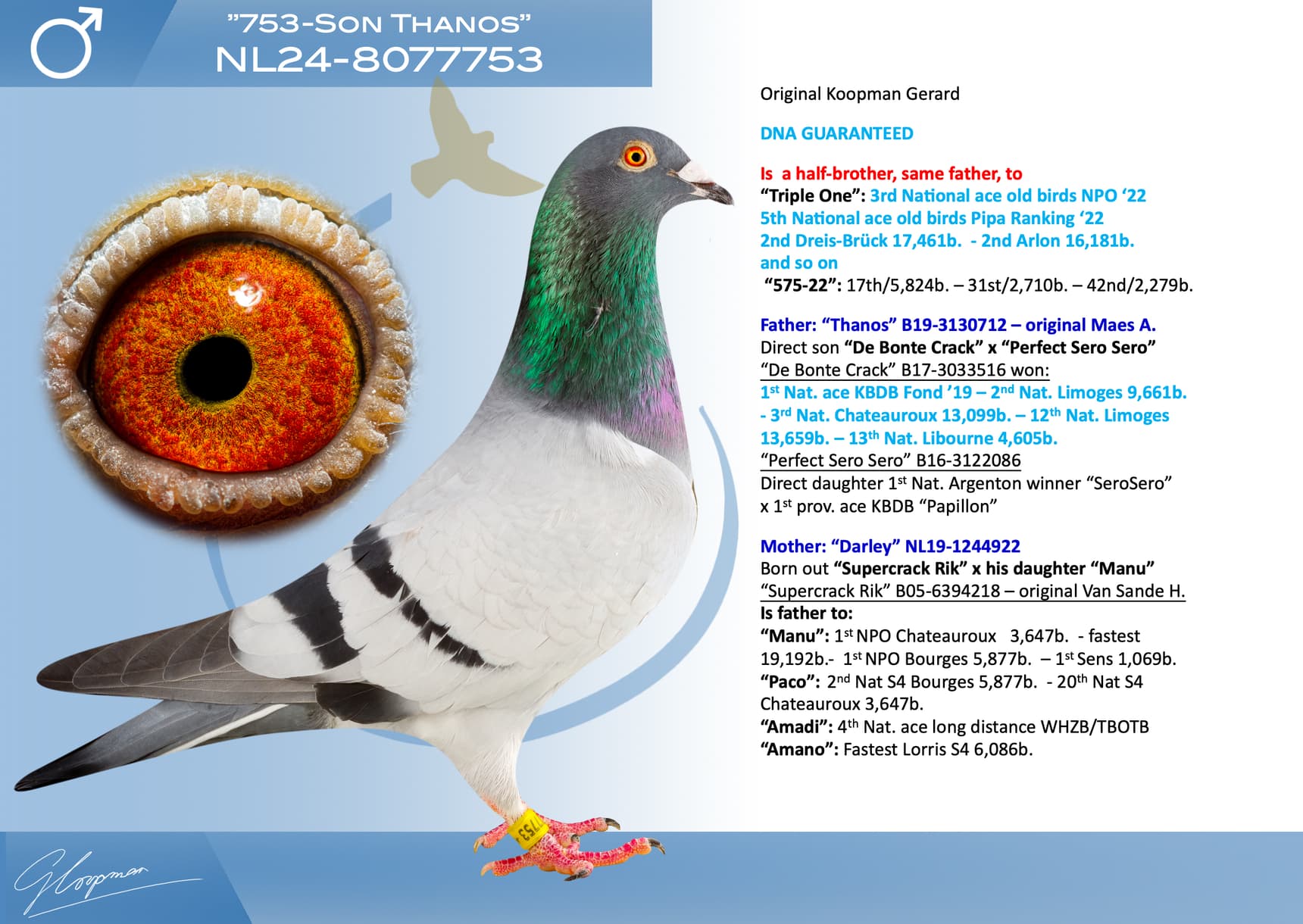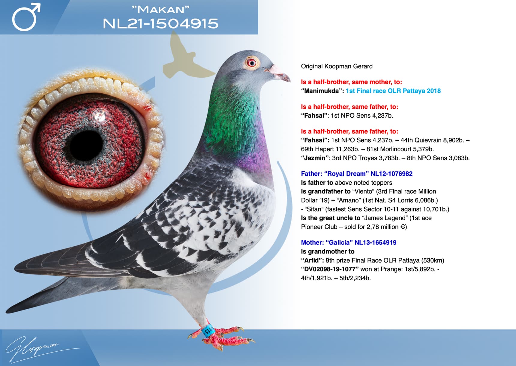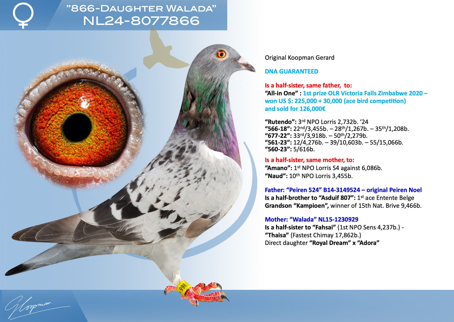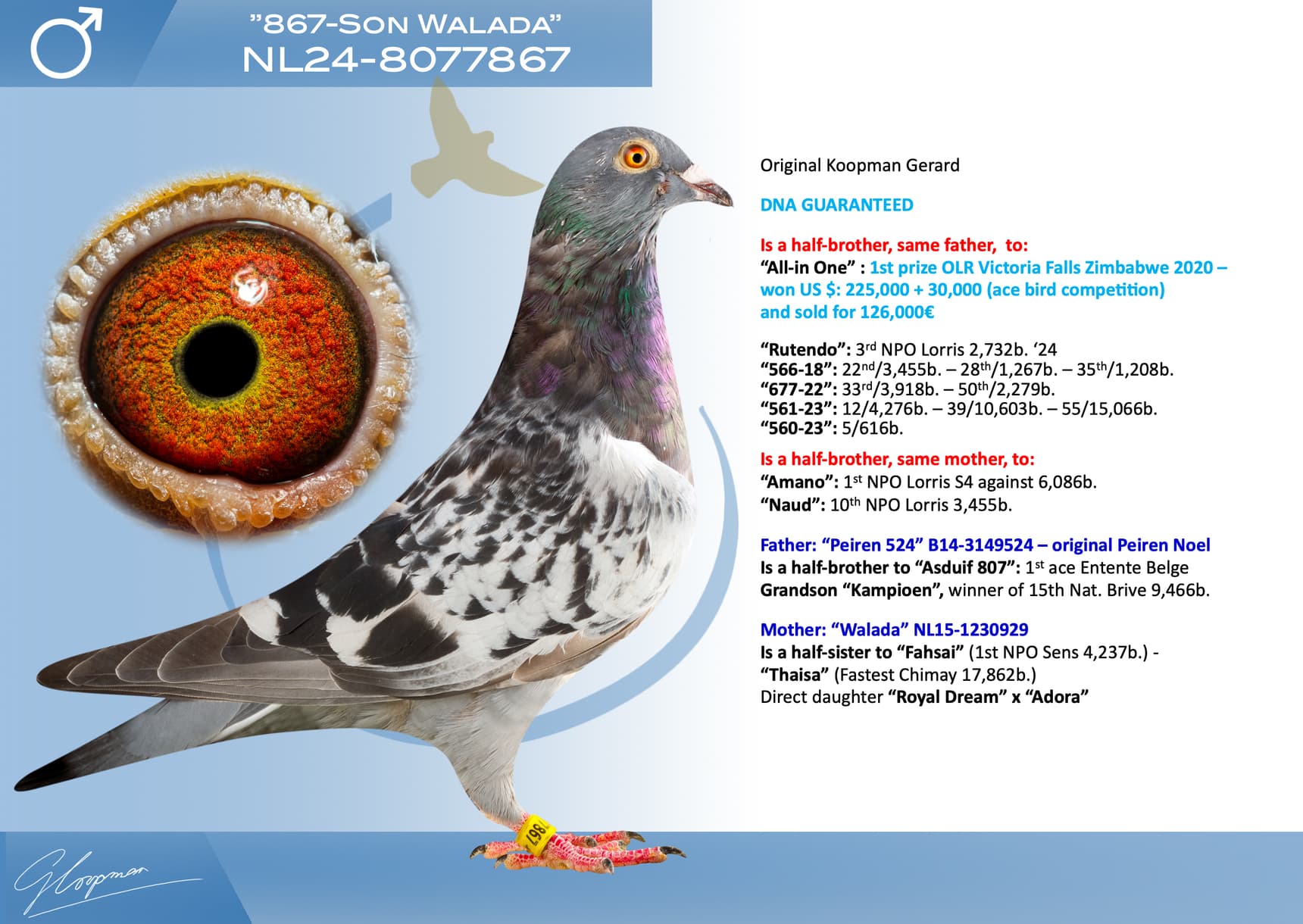 In total, Gerard is auctioning 623 birds. 153 will be sold in 2 public auctions (organization Sportblad De Duif) and 470 Koopman birds will be offered during 4 days (9-10-11 and 12 December) on internet auction Pigeon Bids (organization www.herbots.be.)