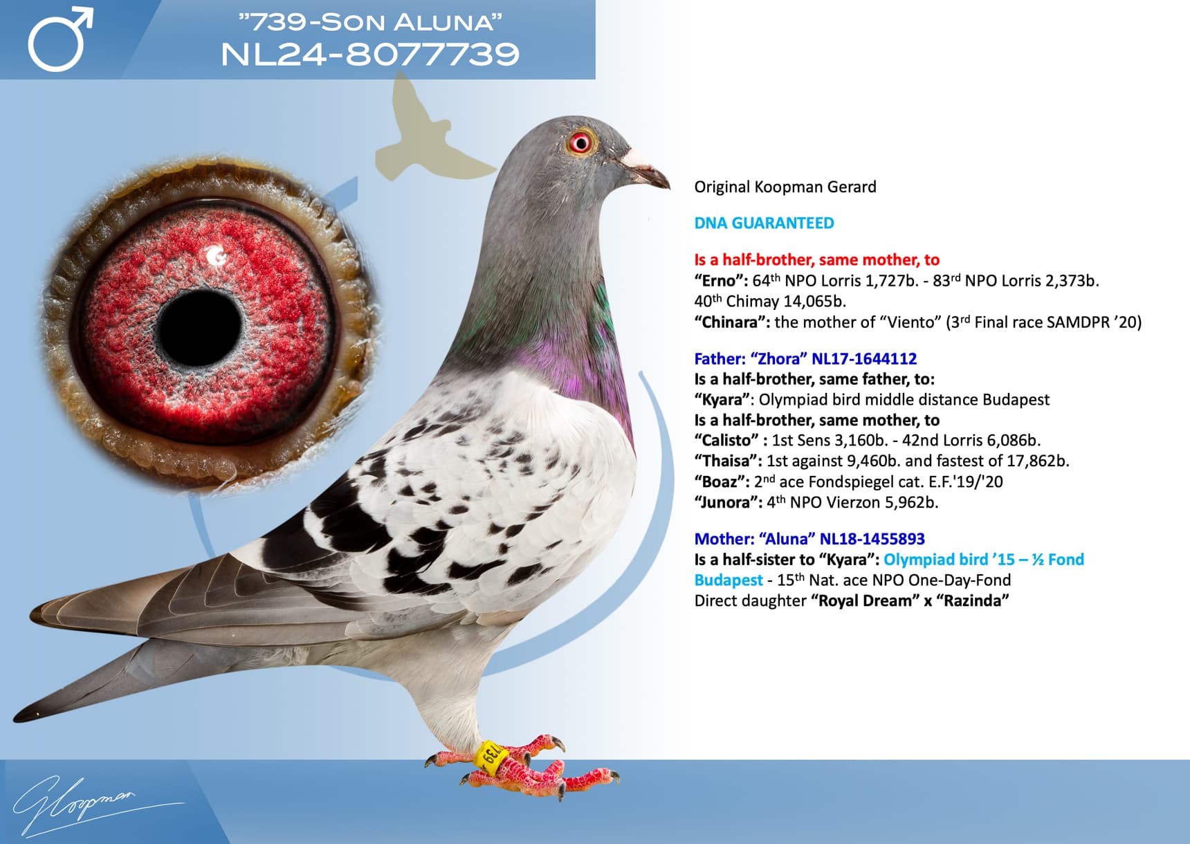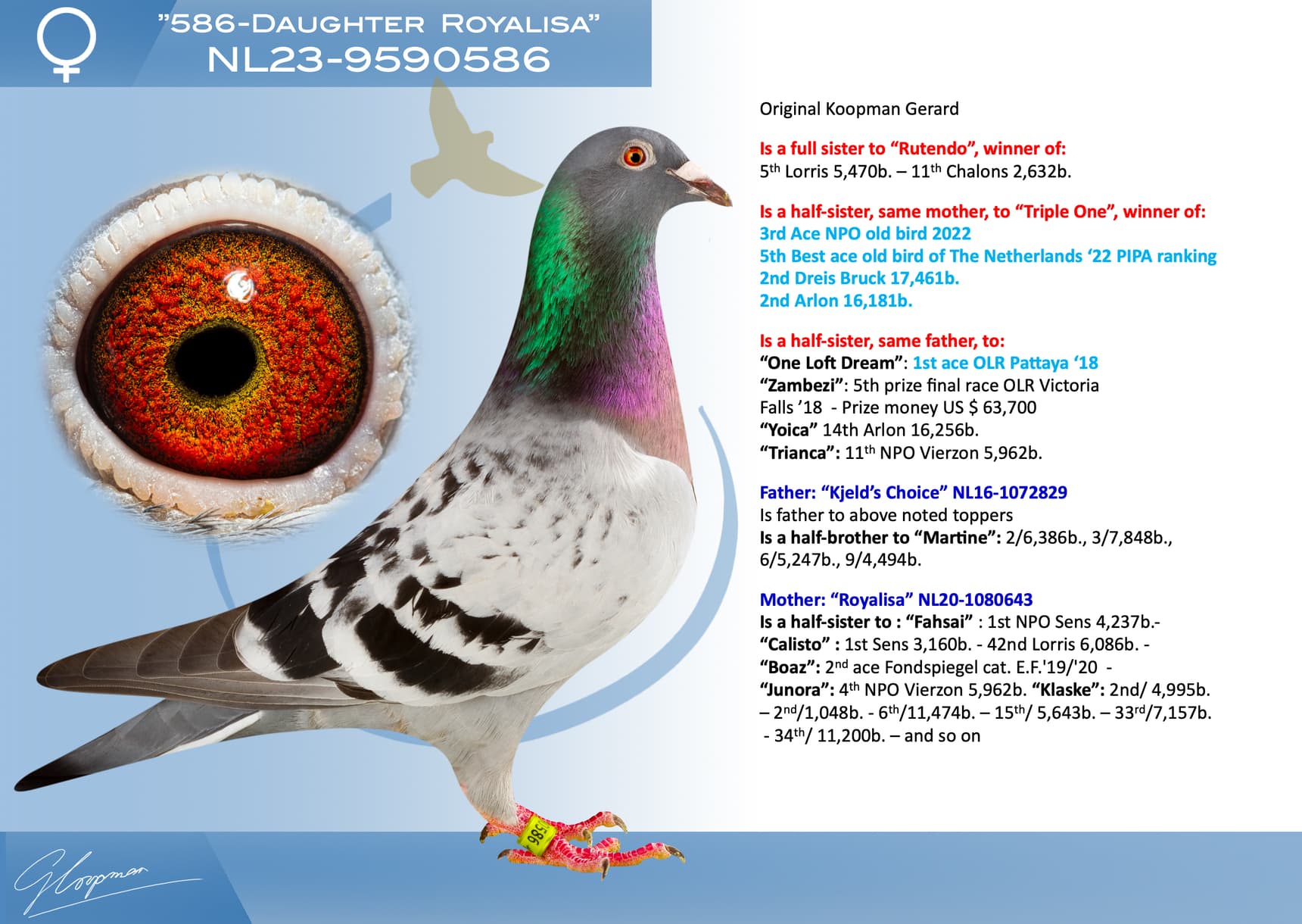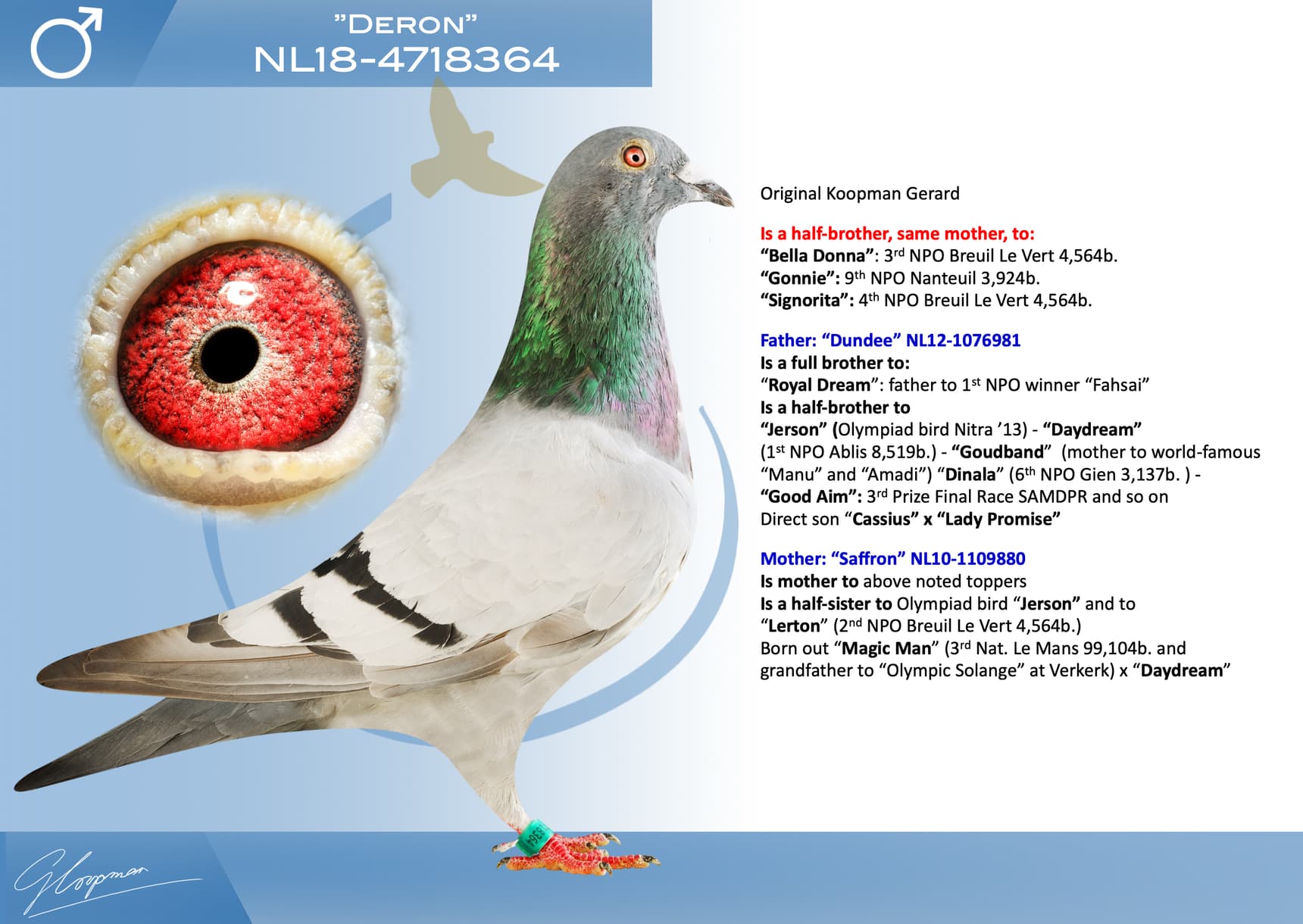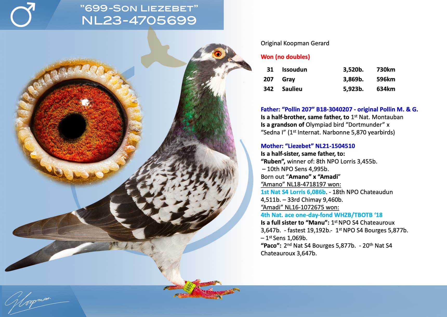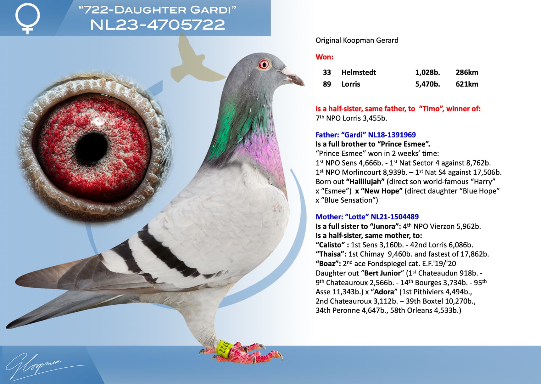 Direct daughter Olympiad bird “Ermerveen’s Hope” x “Young Dream” (9th Orleans 10,825b. – 15th Ablis 13,020b. – 20th Boxtel 13,496b. – 26th Hannut 15,912b. – and so on)