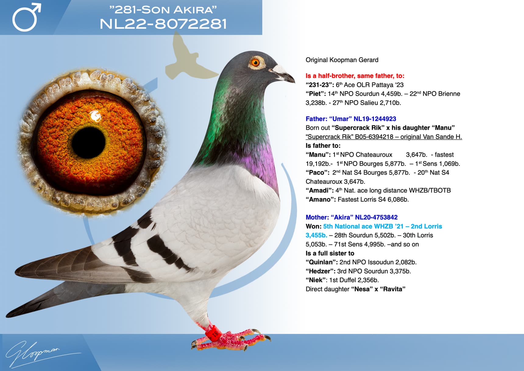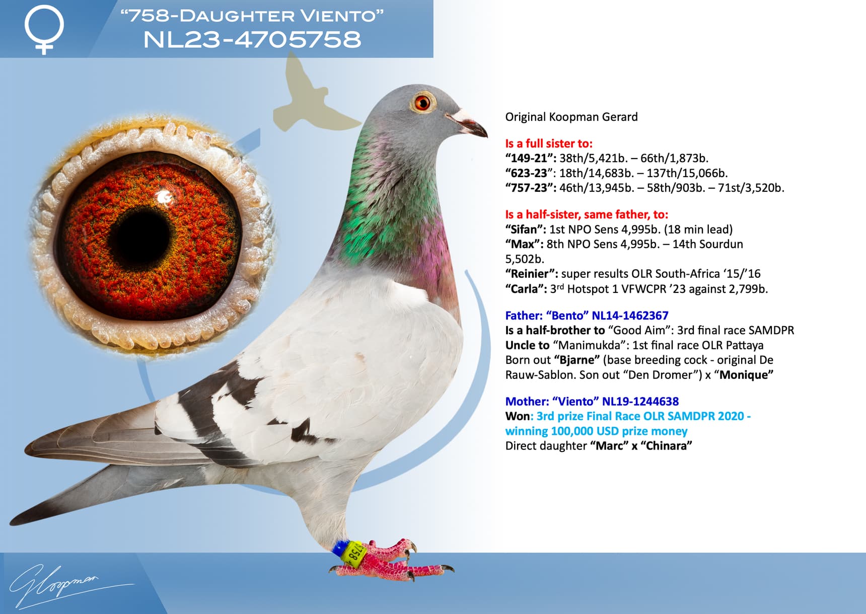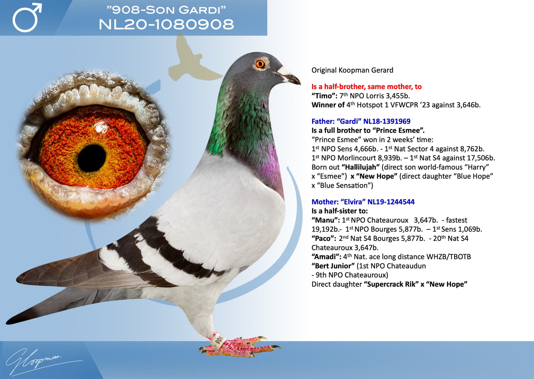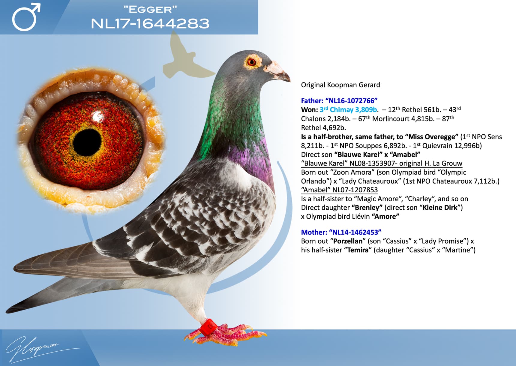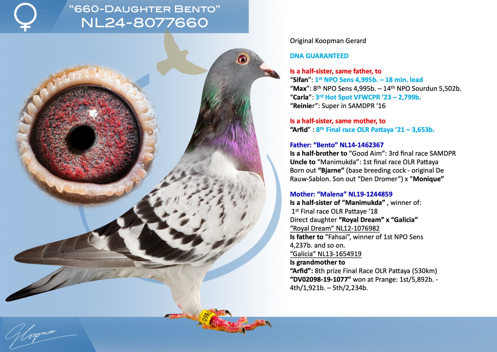 Direct daughter Olympiad bird “Ermerveen’s Hope” x “Young Dream” (9th Orleans 10,825b. – 15th Ablis 13,020b. – 20th Boxtel 13,496b. – 26th Hannut 15,912b. – and so on)