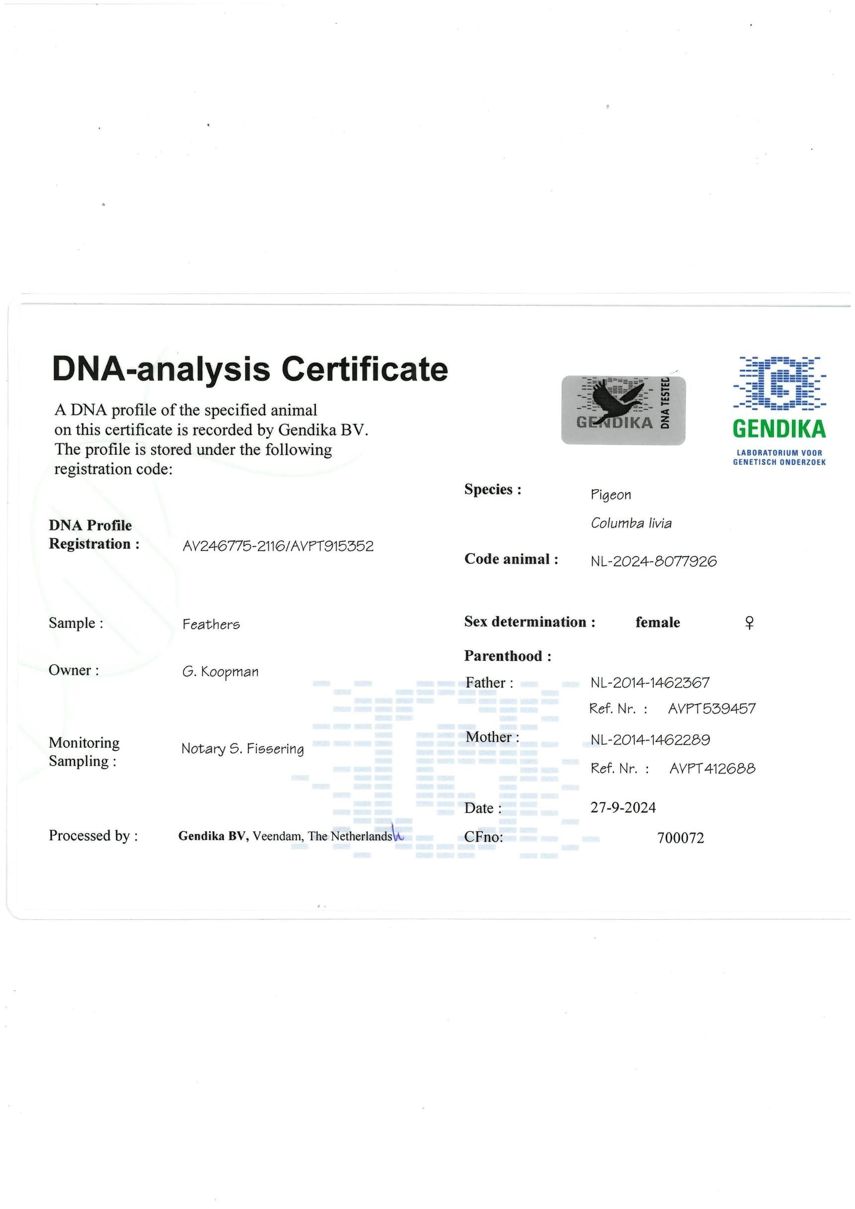 Breeder: KOOPMAN GERARD 吉拉德·考夫曼