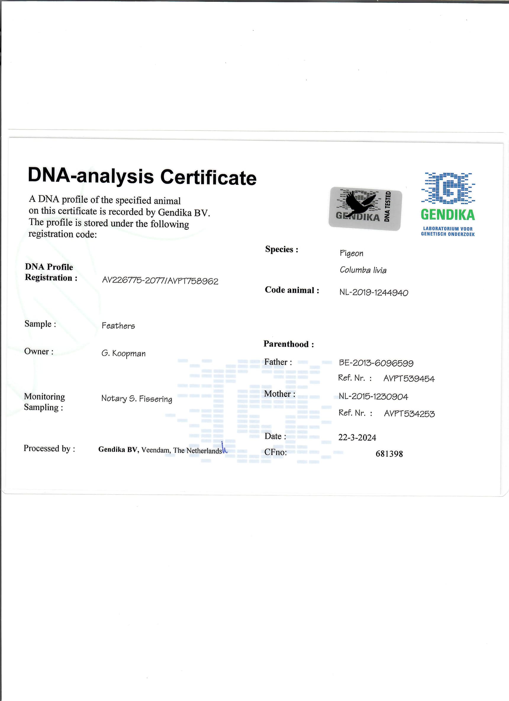 Breeder: KOOPMAN GERARD 吉拉德·考夫曼