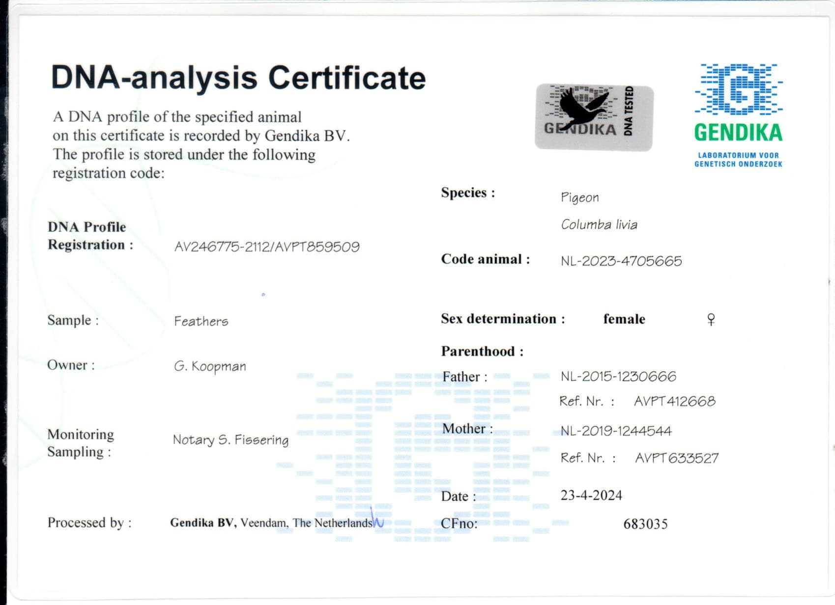 Breeder: KOOPMAN GERARD 吉拉德·考夫曼