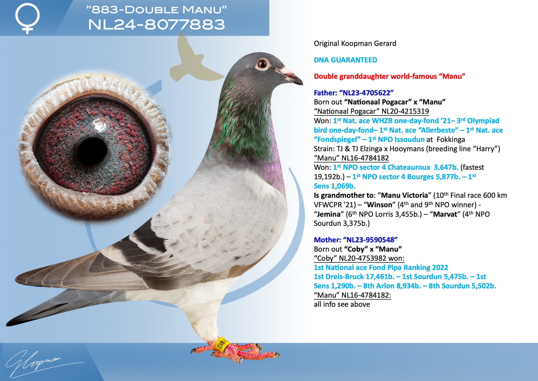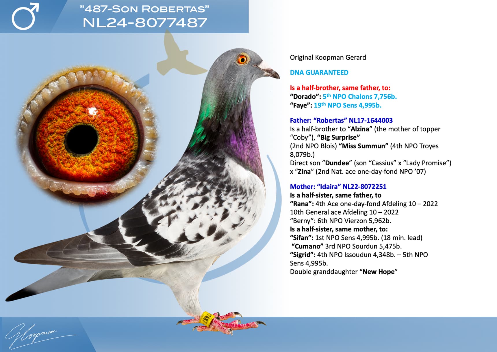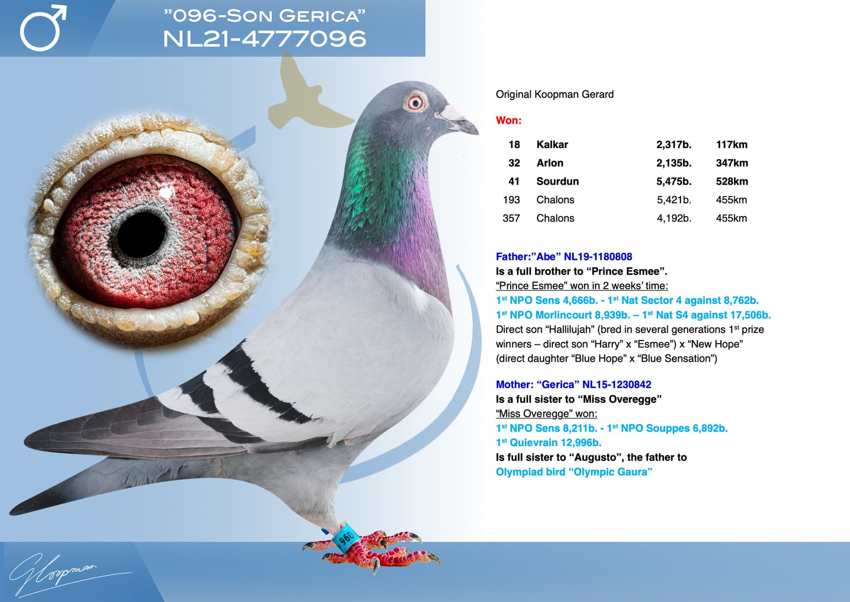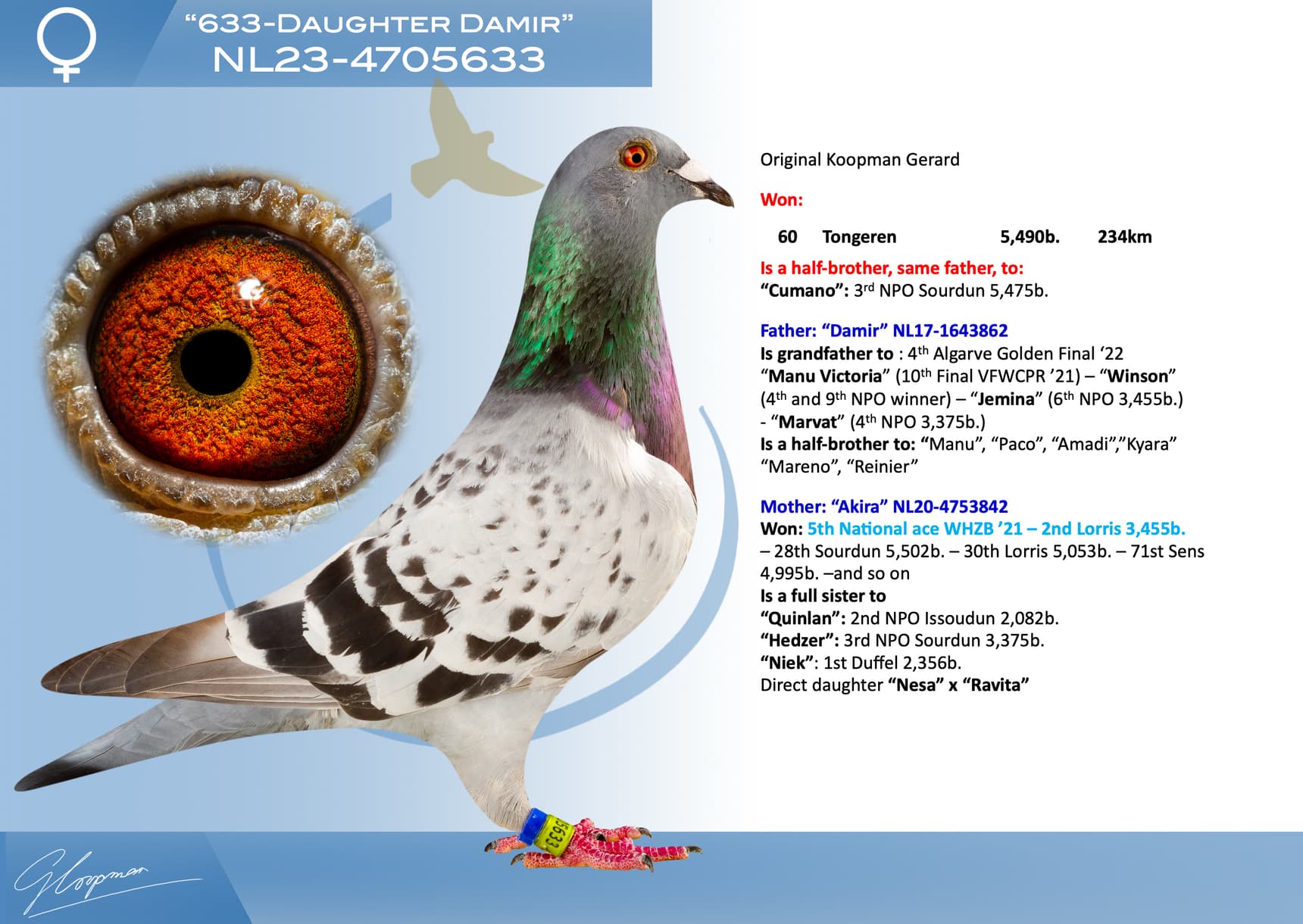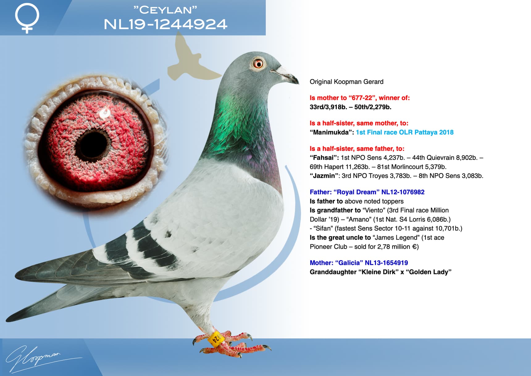 In total, Gerard is auctioning 623 birds. 153 will be sold in 2 public auctions (organization Sportblad De Duif) and 470 Koopman birds will be offered during 4 days (9-10-11 and 12 December) on internet auction Pigeon Bids (organization www.herbots.be.)
