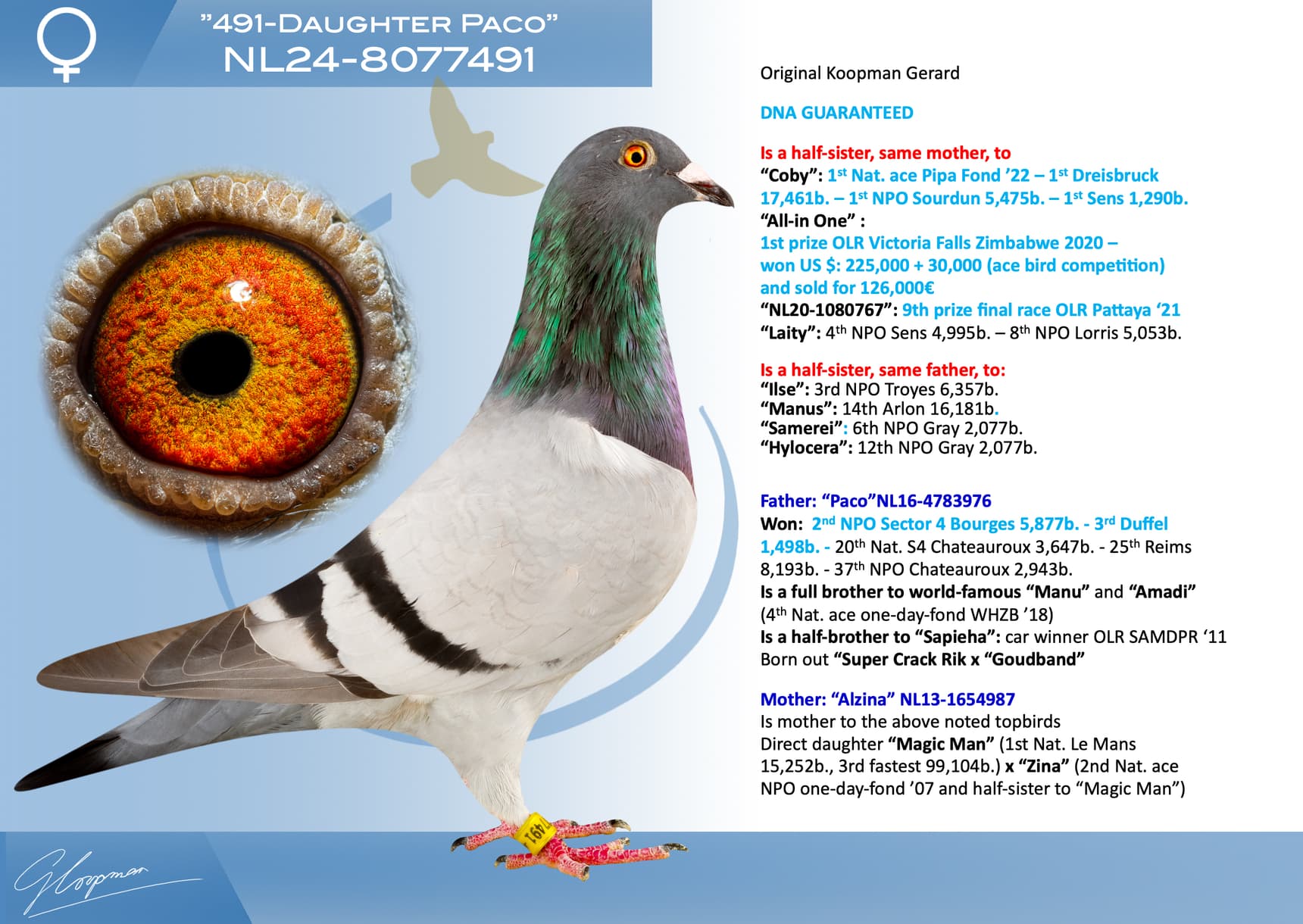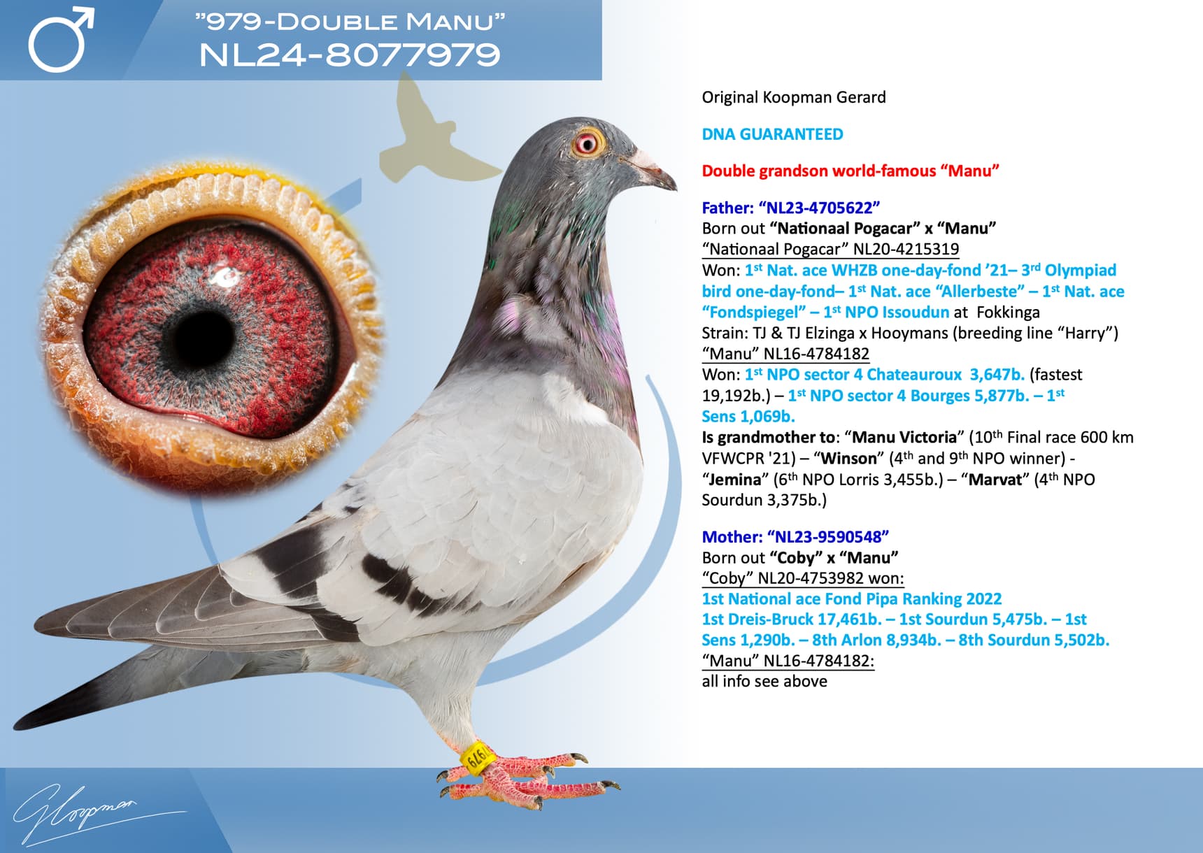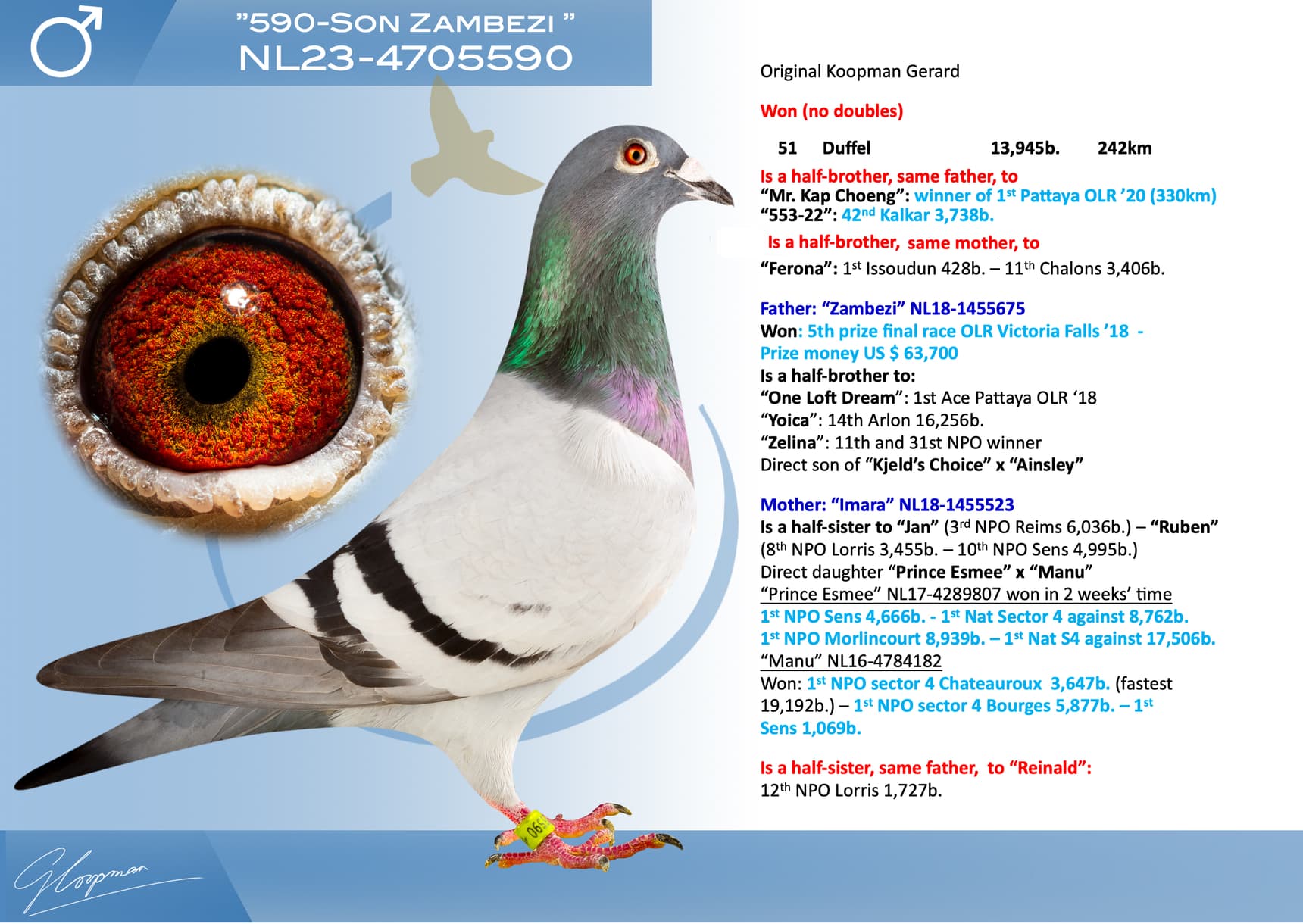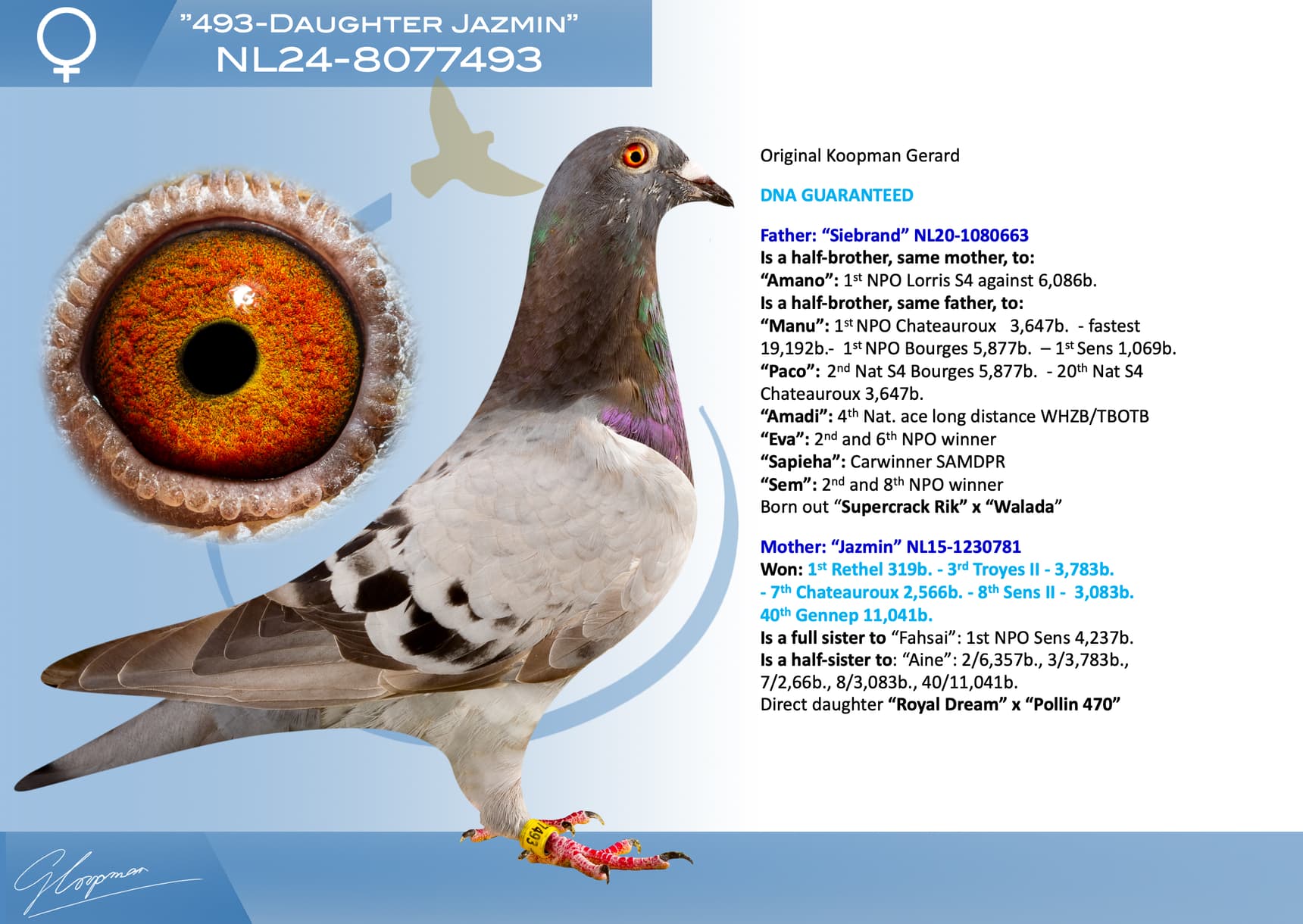 In total, Gerard is auctioning 623 birds. 153 will be sold in 2 public auctions (organization Sportblad De Duif) and 470 Koopman birds will be offered during 4 days (9-10-11 and 12 December) on internet auction Pigeon Bids (organization www.herbots.be.)