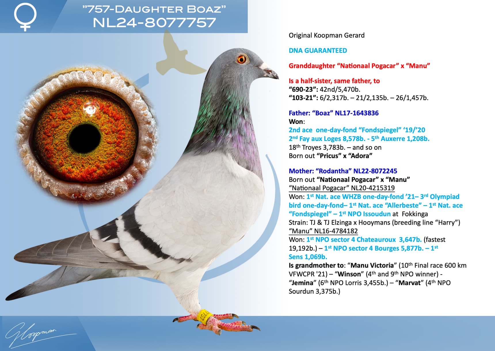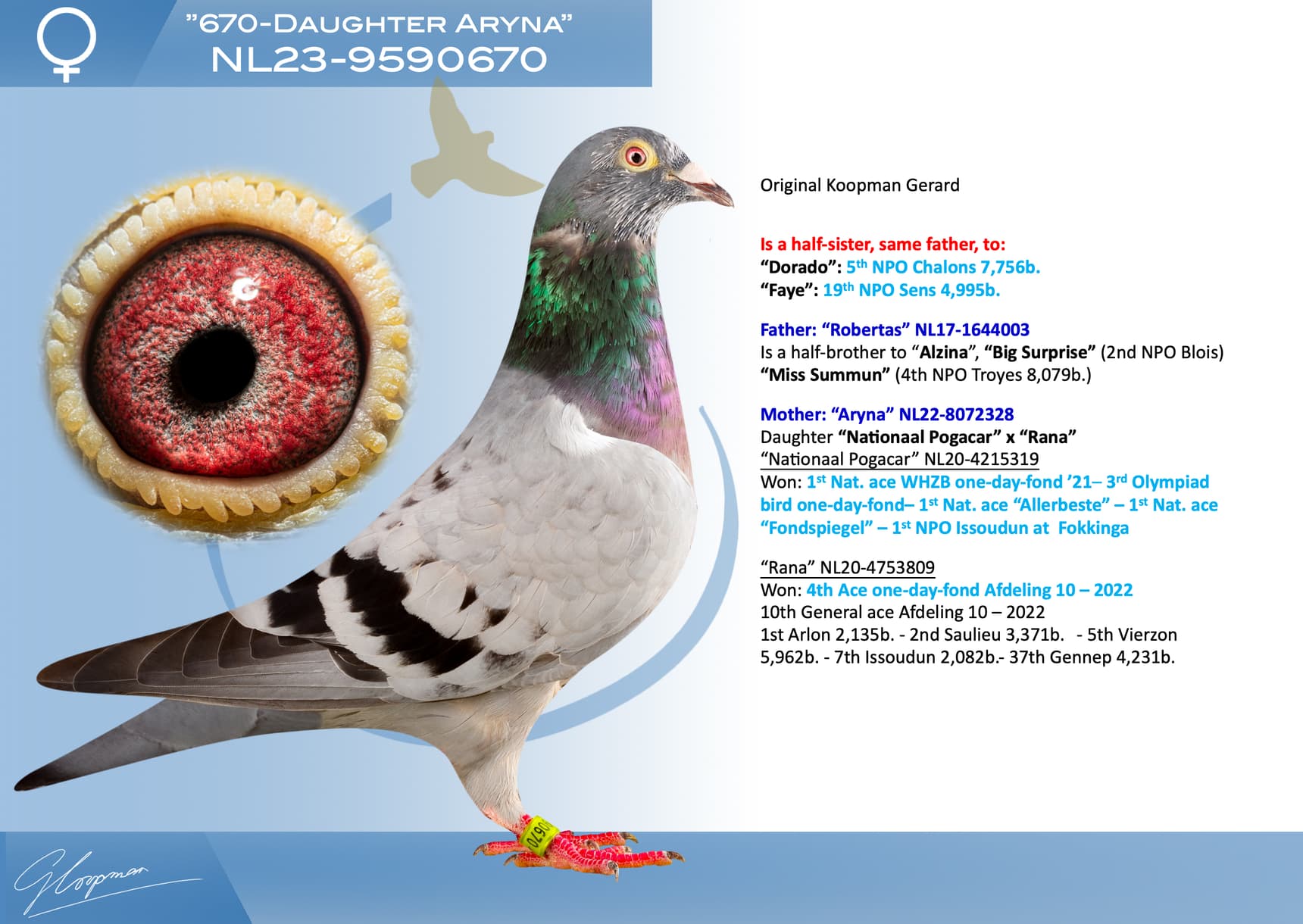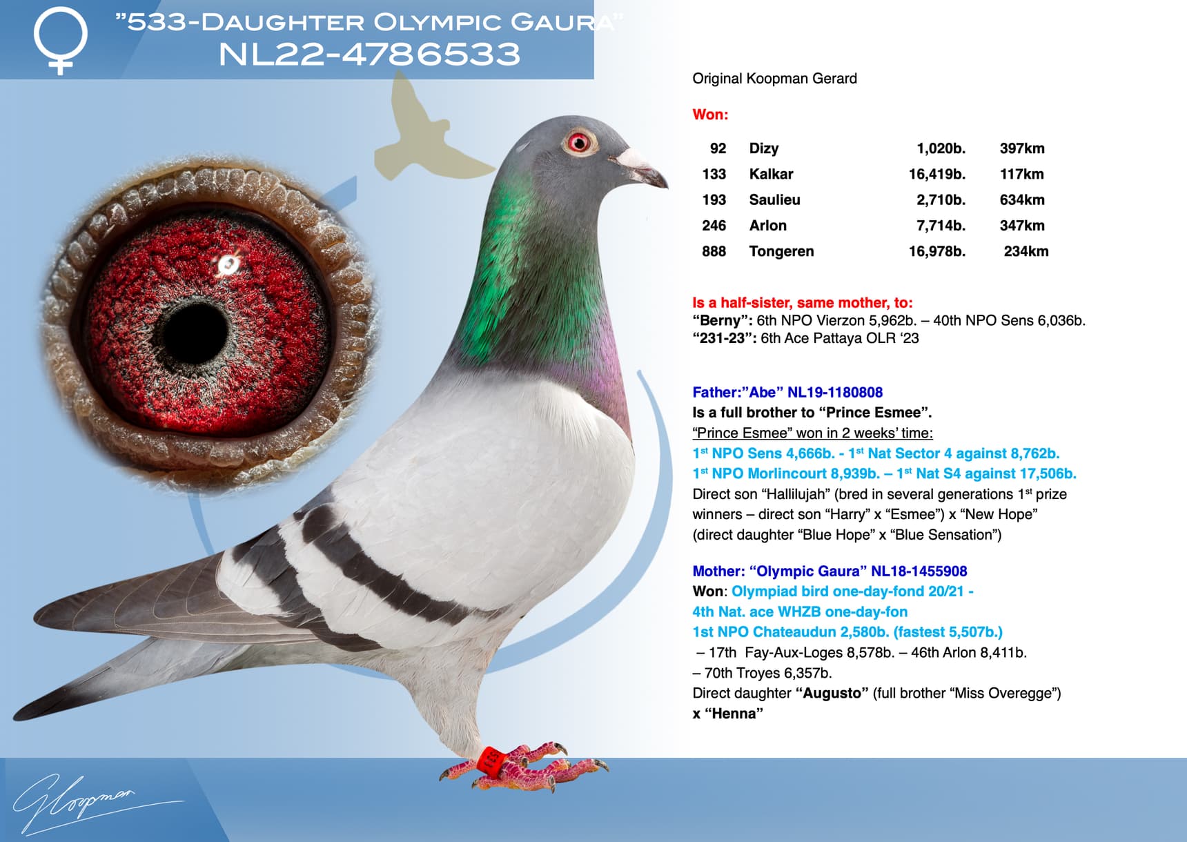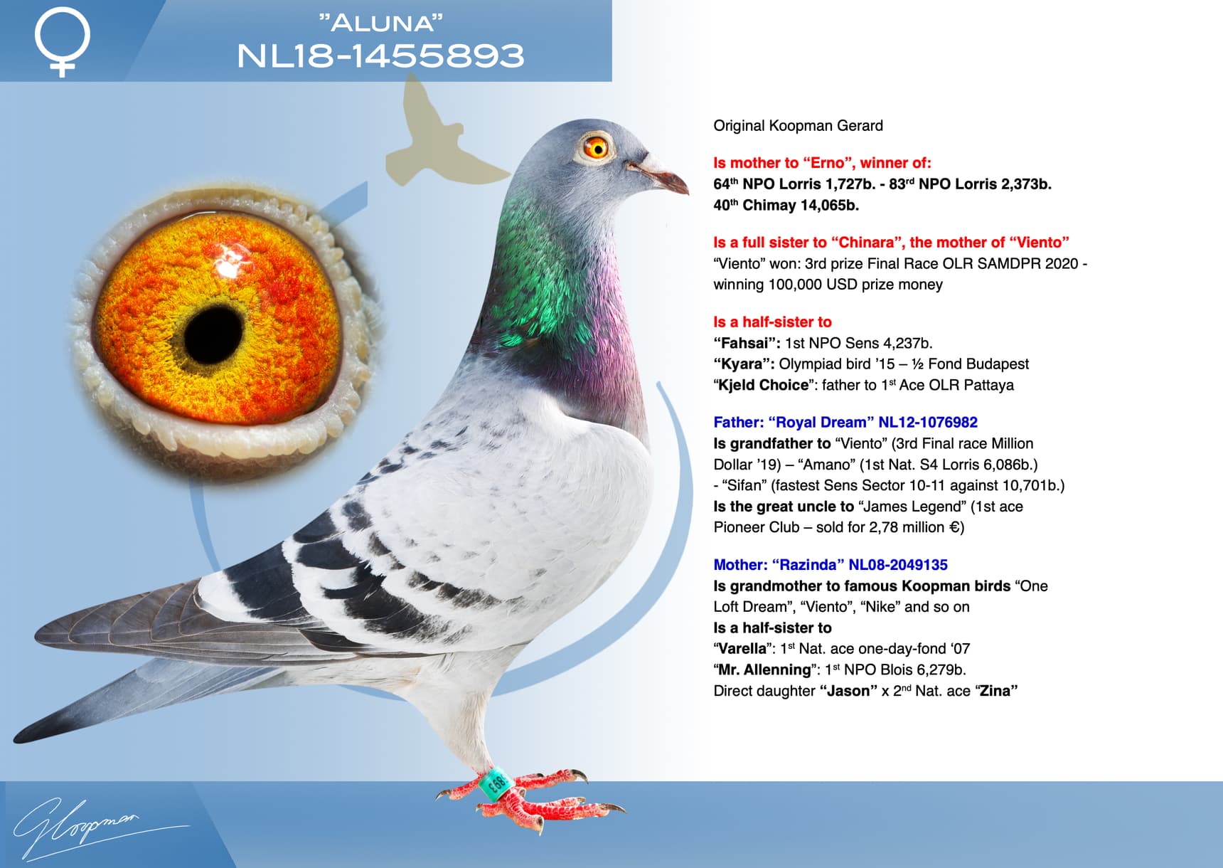 In total, Gerard is auctioning 623 birds. 153 will be sold in 2 public auctions (organization Sportblad De Duif) and 470 Koopman birds will be offered during 4 days (9-10-11 and 12 December) on internet auction Pigeon Bids (organization www.herbots.be.)