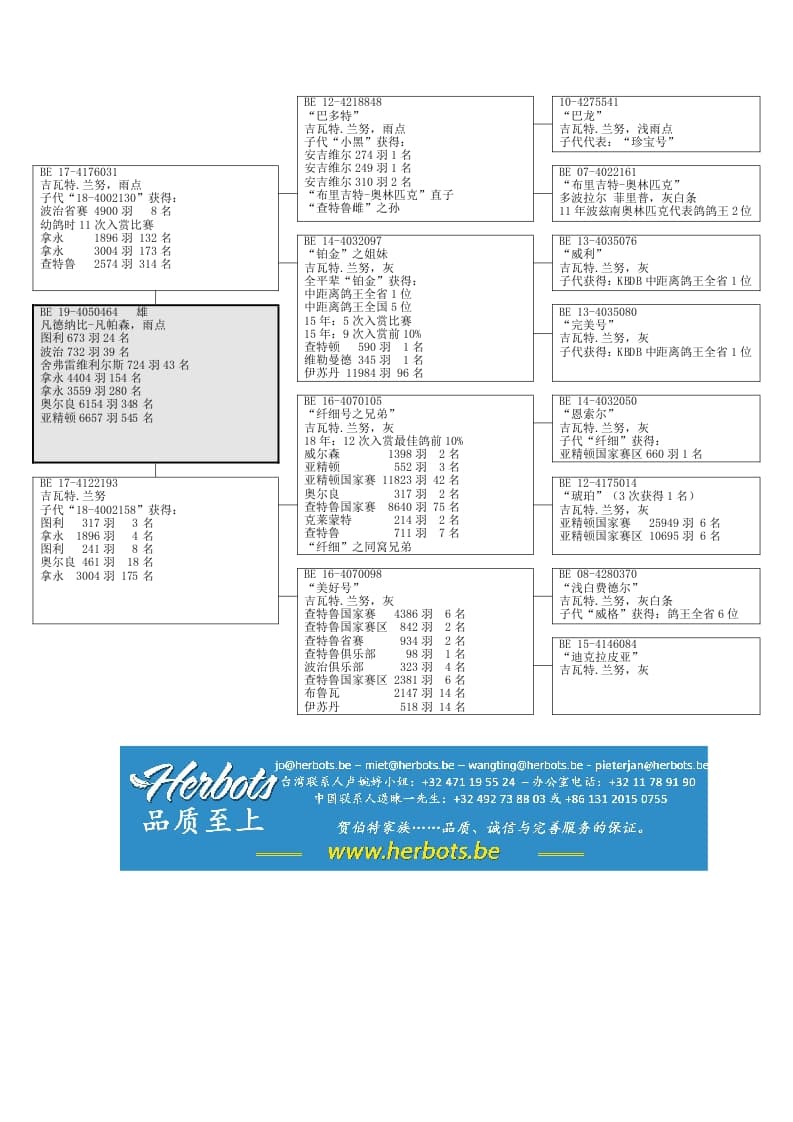 Breeder: VAN DEN ABBEEL - VAN PAESSCHEN 范帕森夫妇