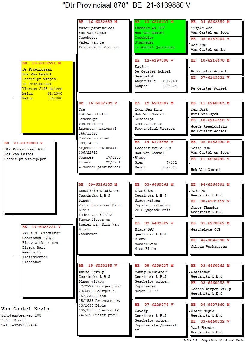Born out “Geschifte Gladiator” (full brother “Miss Blois”) x top hen “White Lovely”