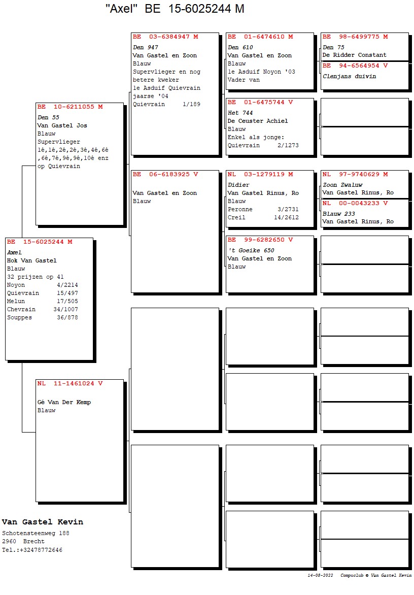 Direct son “Den 947” ( 1st Quievrain 189b. and 1st ace yearbirds) x “B06-6183925”