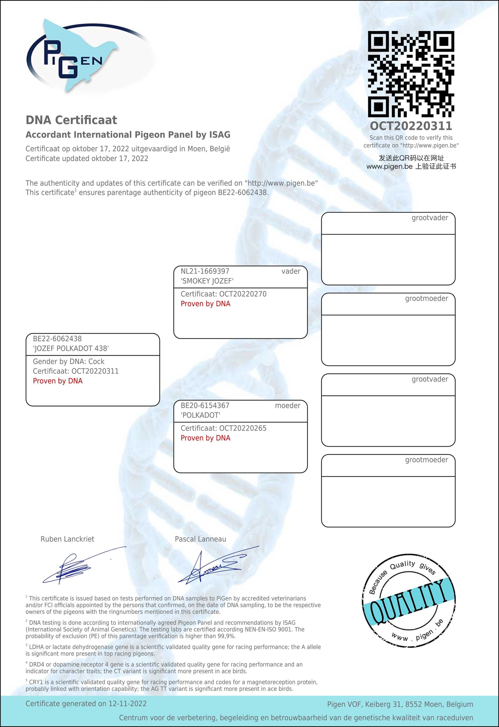 1st Nat. ace Fond WHZB ’20 – 1st National ace ½ Fond “De Allerbeste” ’20 – Olympiad bird Cat. G yearbirds ‘20 – 5th NPO Chateaudun 4,058b. - 7th NPO Fay Aux Loges 5,735b. – 11th Nat. 14,036b.