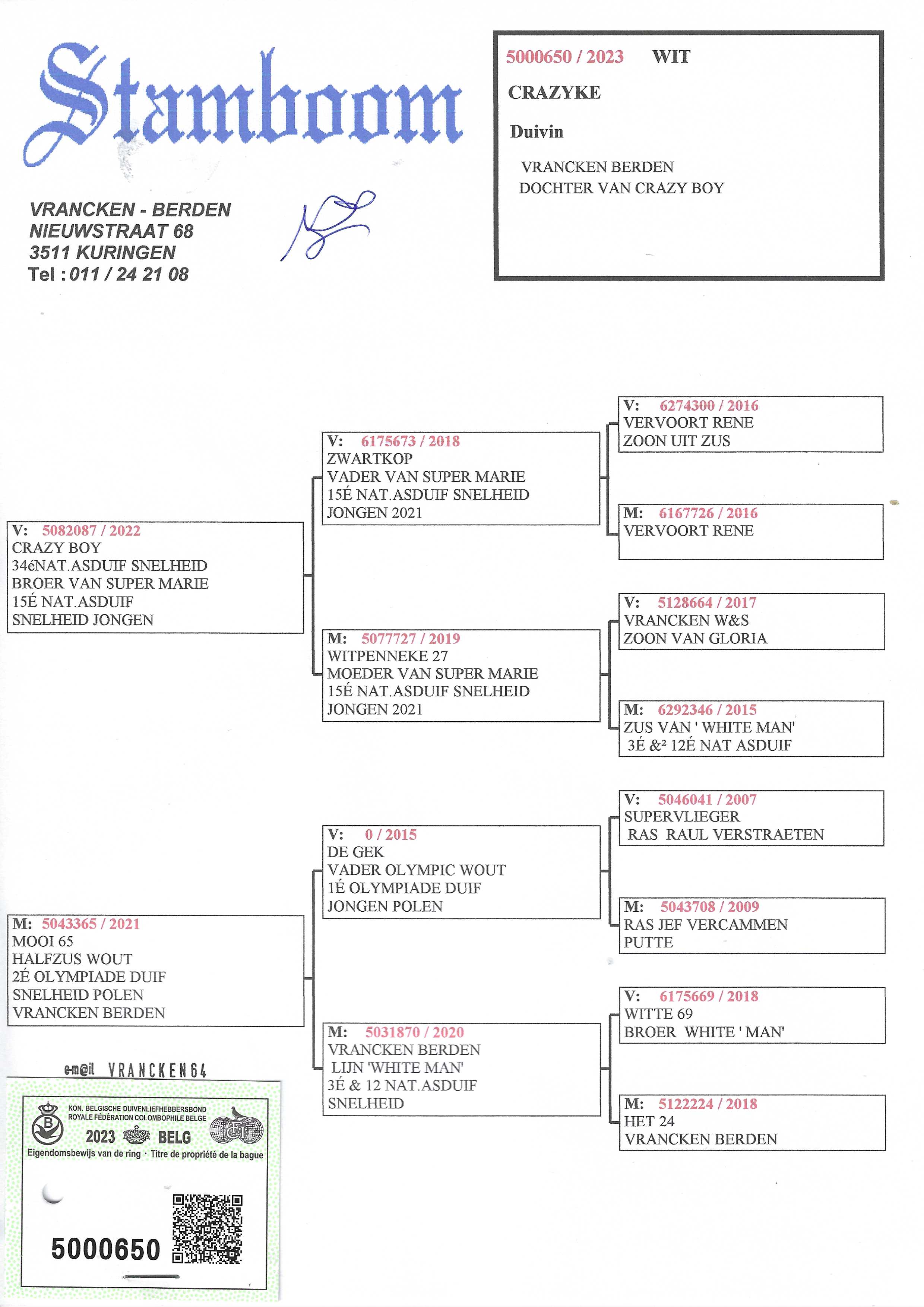 Breeder: VRANCKEN - BERDEN 佛兰肯-伯登