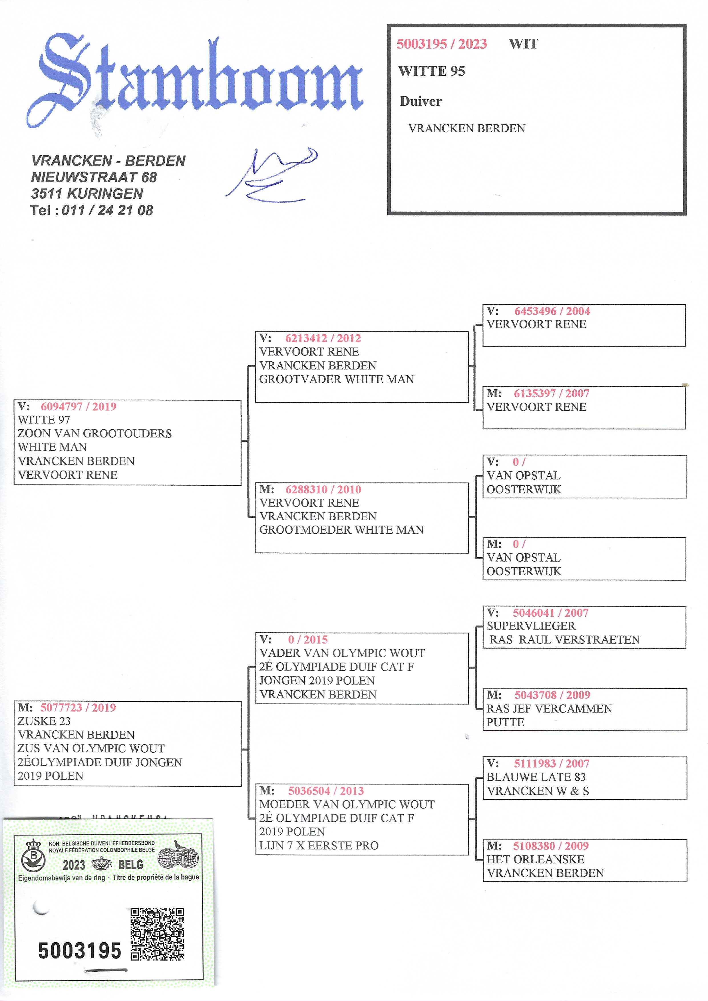 Breeder: VRANCKEN - BERDEN 佛兰肯-伯登