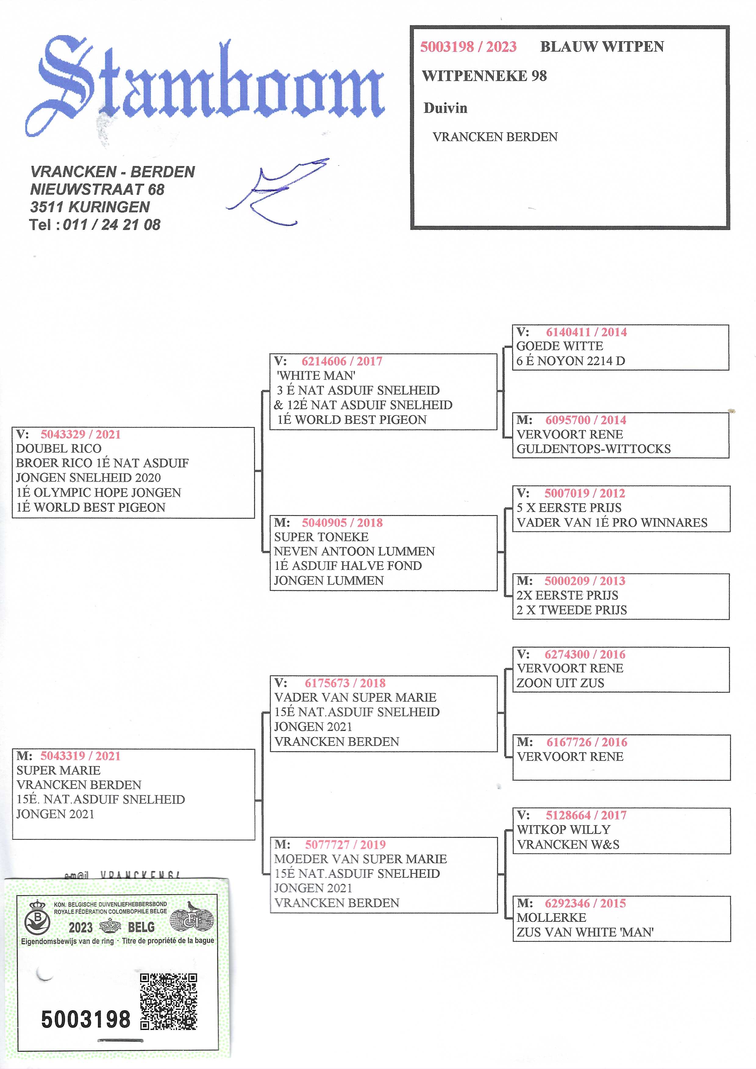 Breeder: VRANCKEN - BERDEN 佛兰肯-伯登