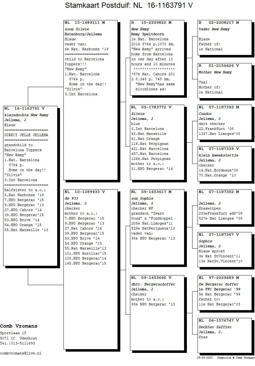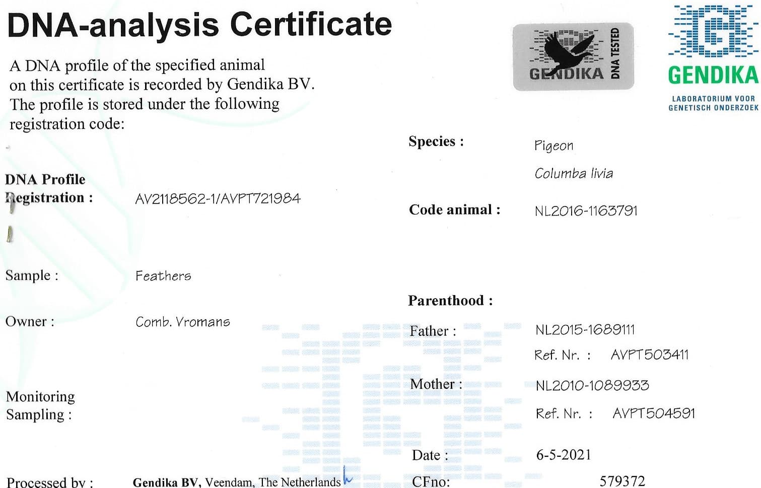 Born out “Son Sophie” (grandson “Zwart Goud” x “Fondkoppel”)  x “Daughter Bergerac doffer”
