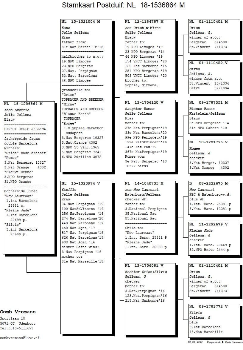 Grandson “Orion” (6th Bergerac 4,588b.) and “Blauwe Benno” (3rd NPO Bergerac)