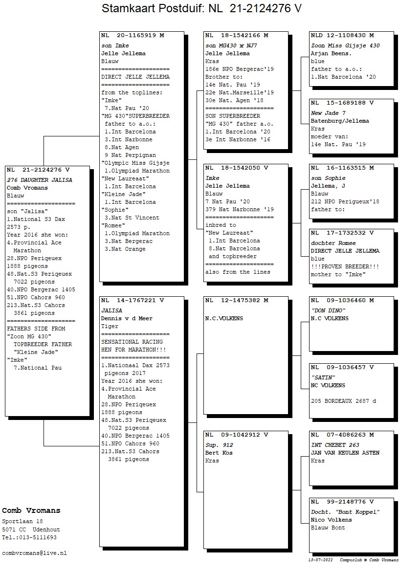 Mother: “Jalisa” NL14-1767221 – original D. VD Meert