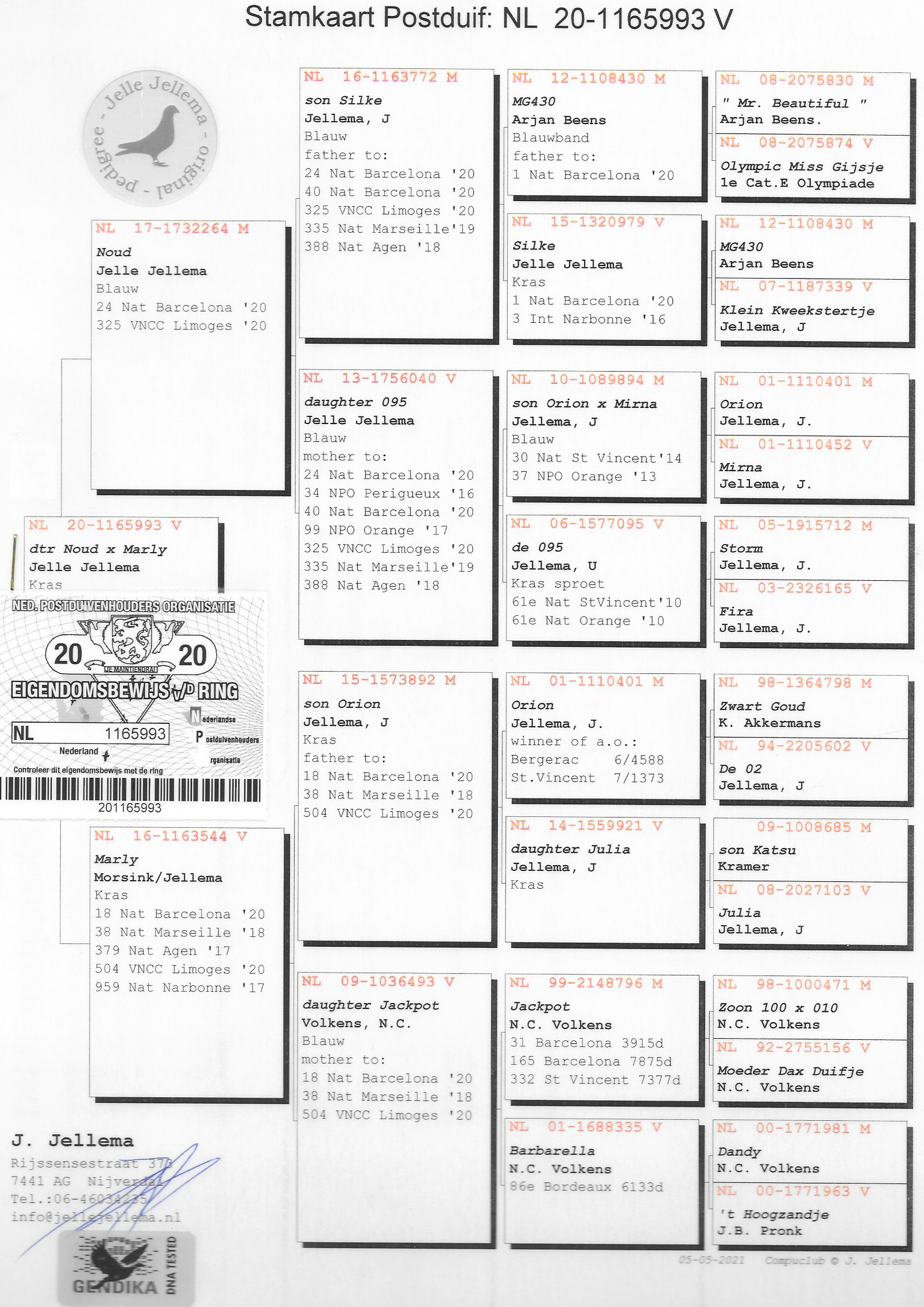 Is a granddaughter of topracer “Orion” and “Jackpot” (31st Nat. Barcelona)