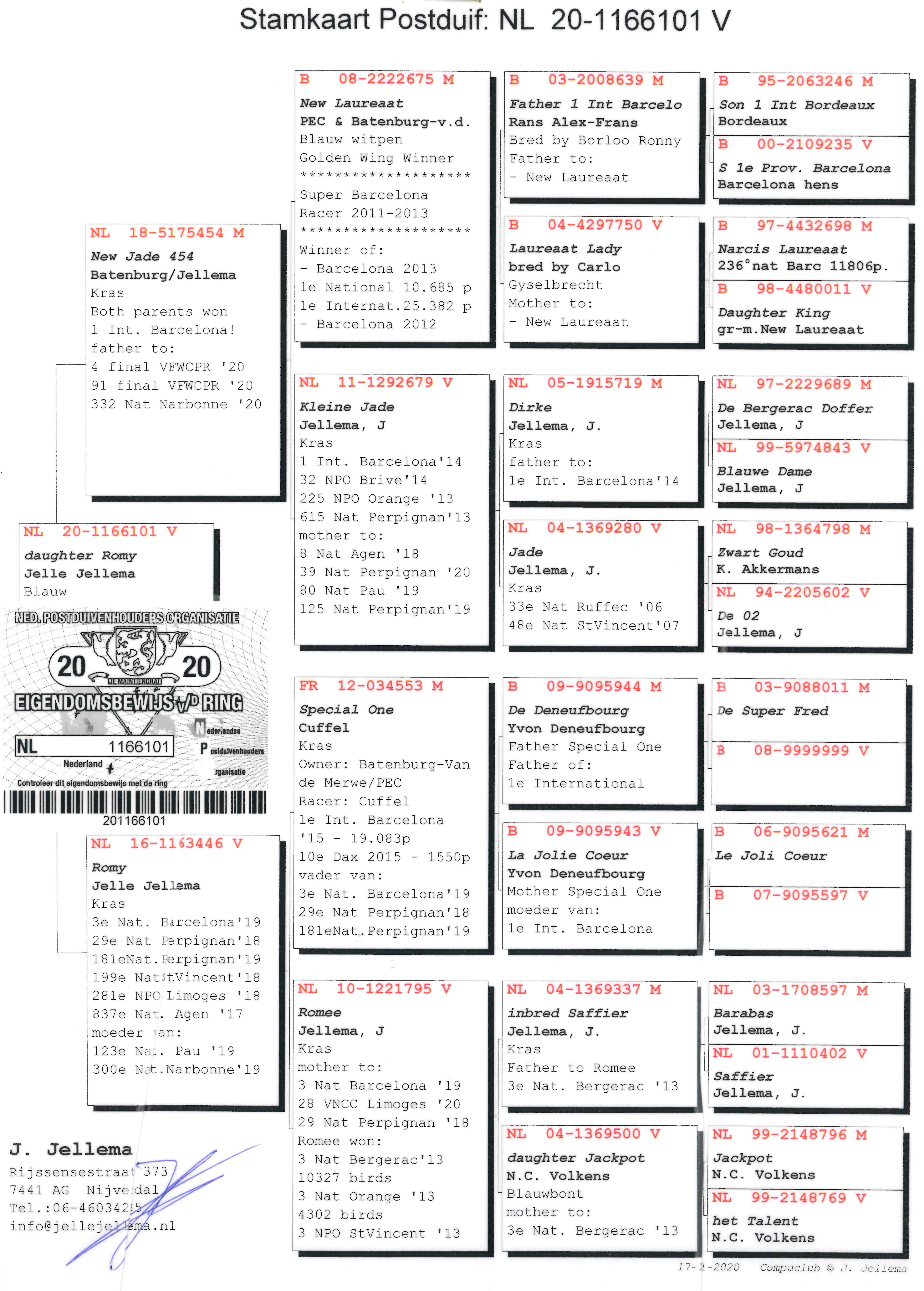 Olympiad bird marathon Budapest - 3rd Nat. Bergerac 10,327b. - 3rd Nat. Orange 4,302b. - 3rd NPO St. Vincent 1,365b. - 5th Nat. Brive 7,241b. - 6th NPO Aurillac 3,072b.