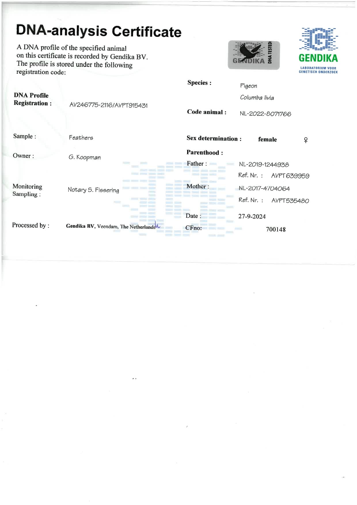 Breeder: KOOPMAN GERARD 吉拉德·考夫曼