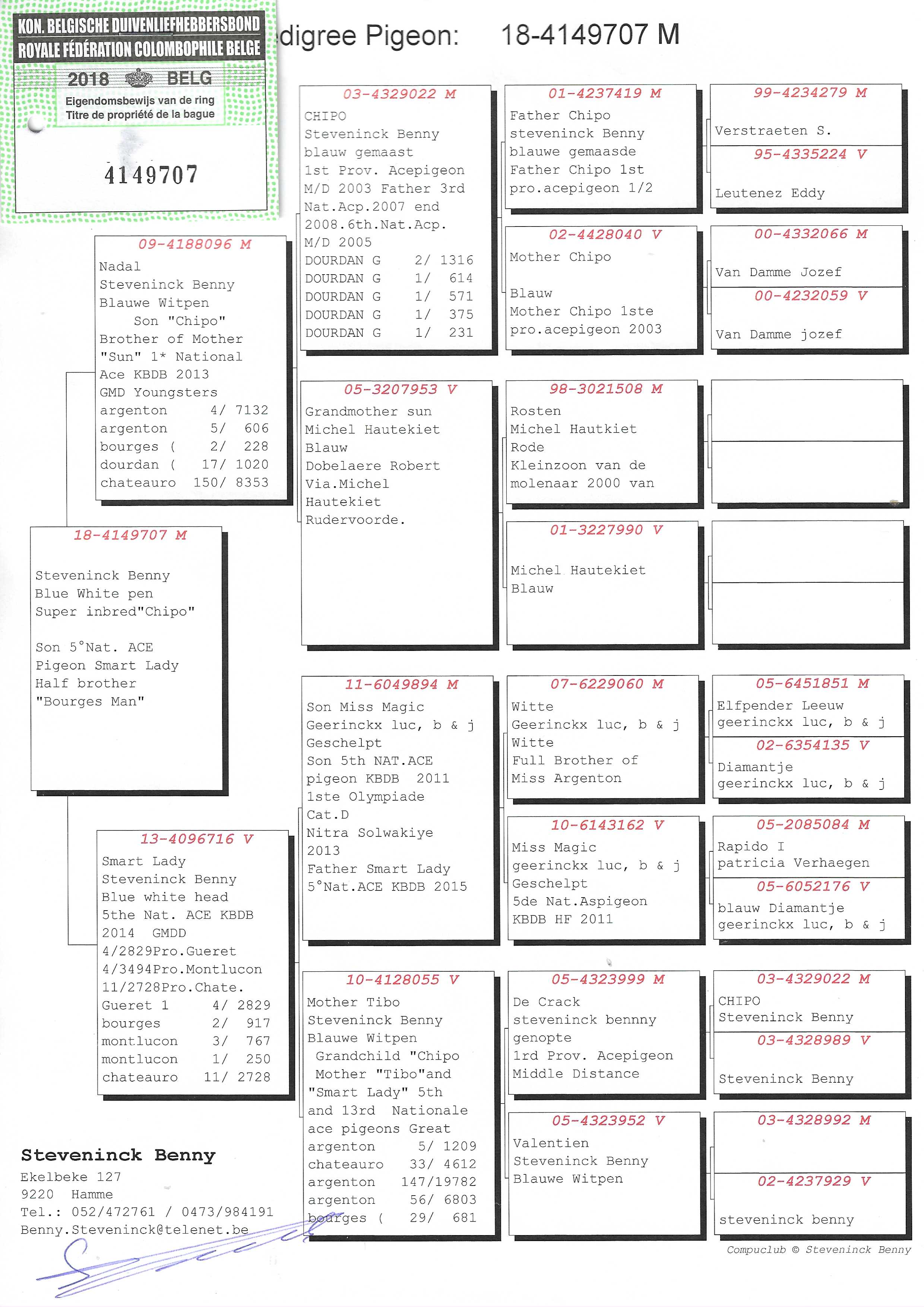 Breeder: STEVENINCK BENNY 宾尼·史蒂文